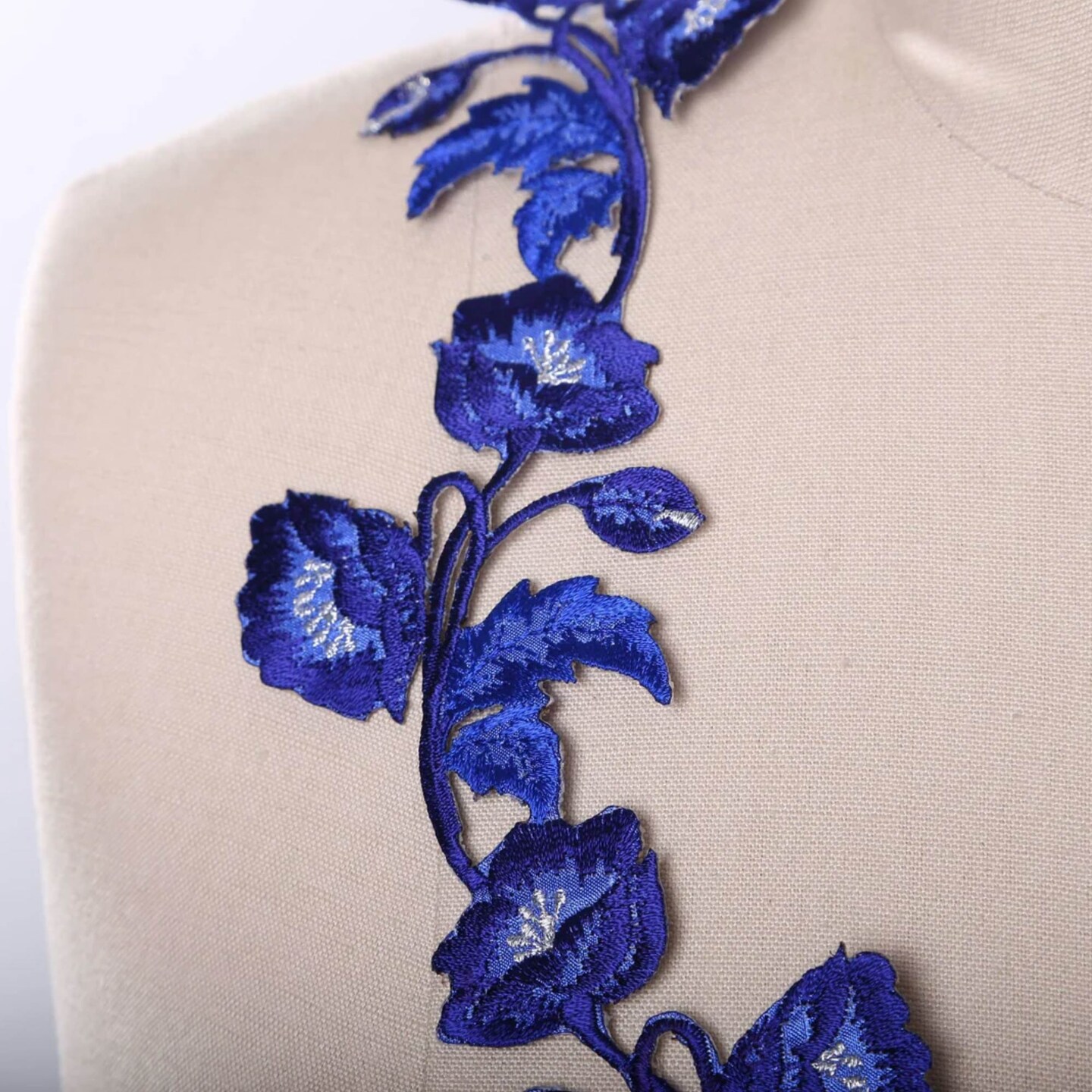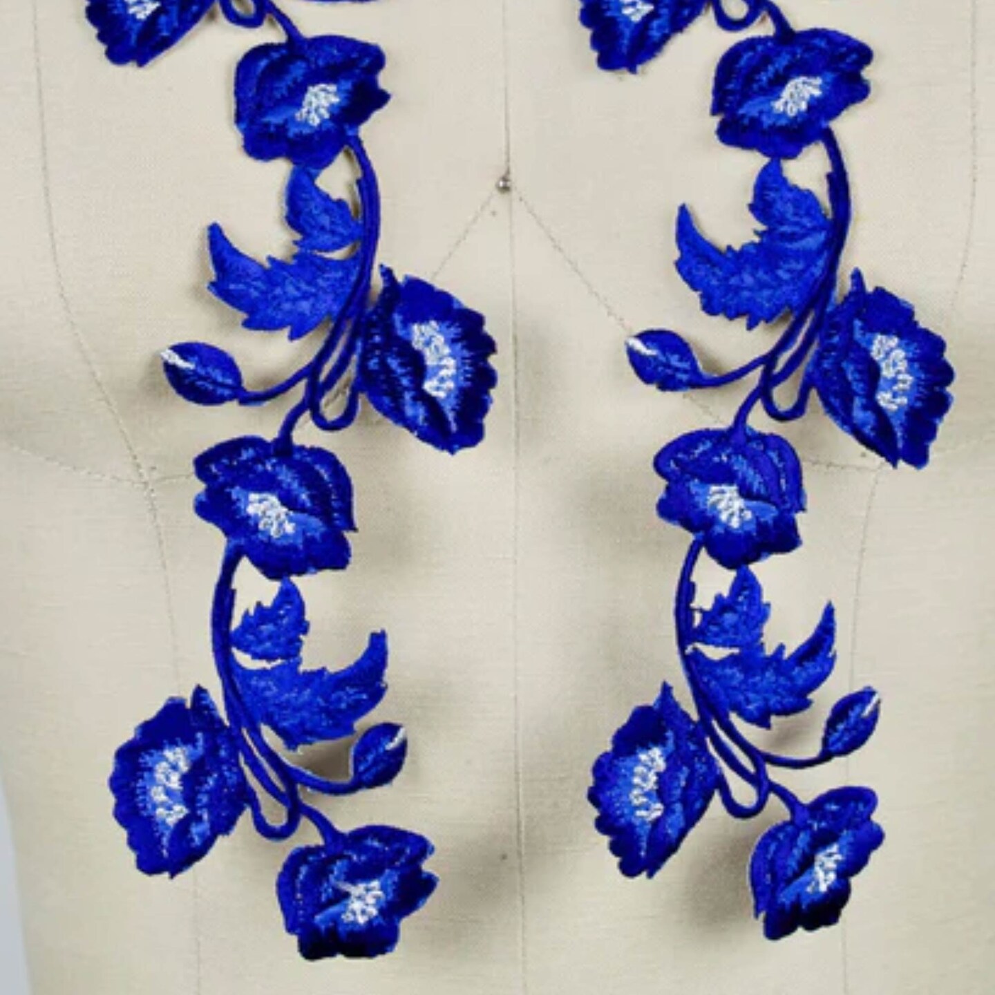 2 Pieces Royal Blue Embroidered Flower Applique Patches with Iron On Backing