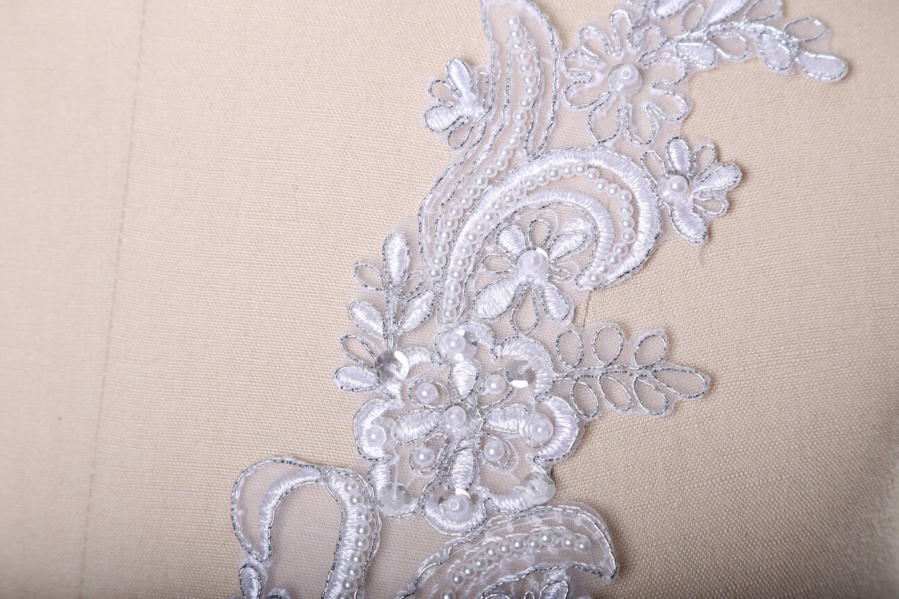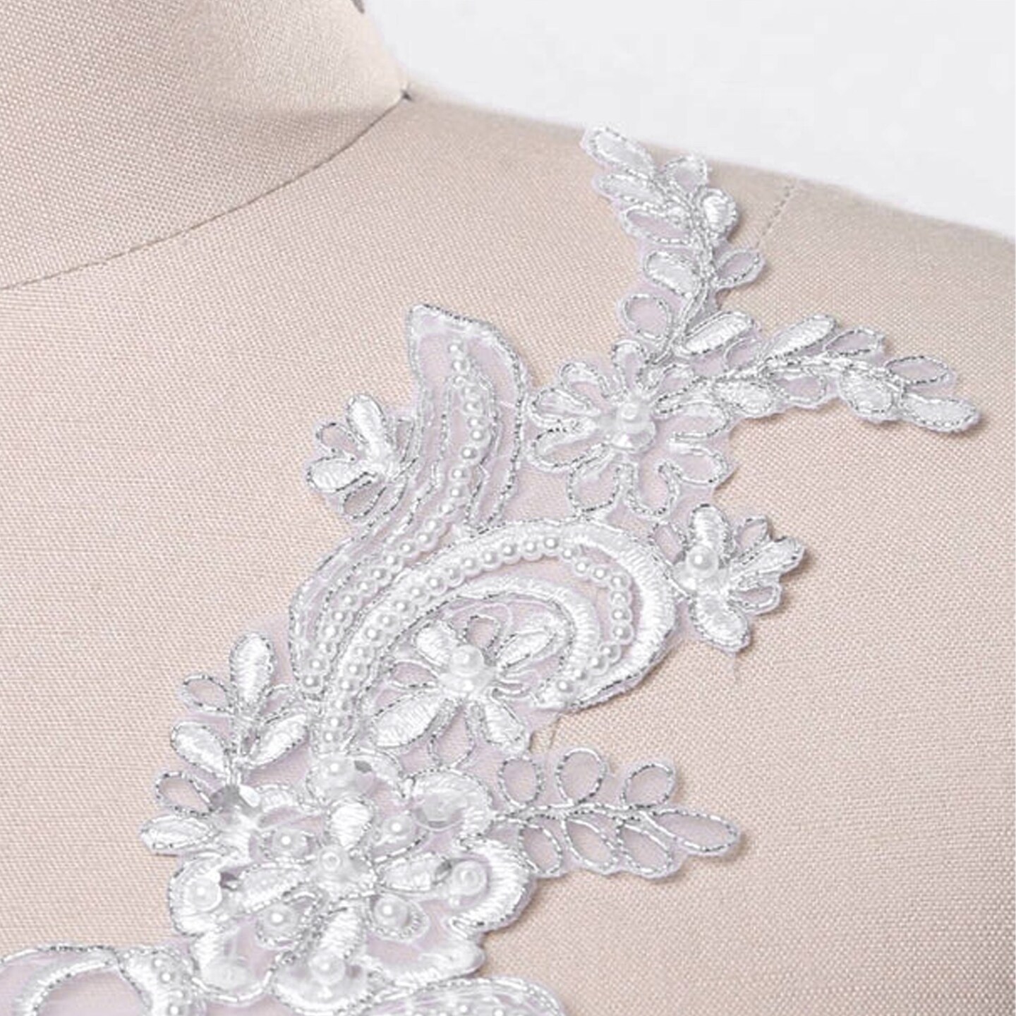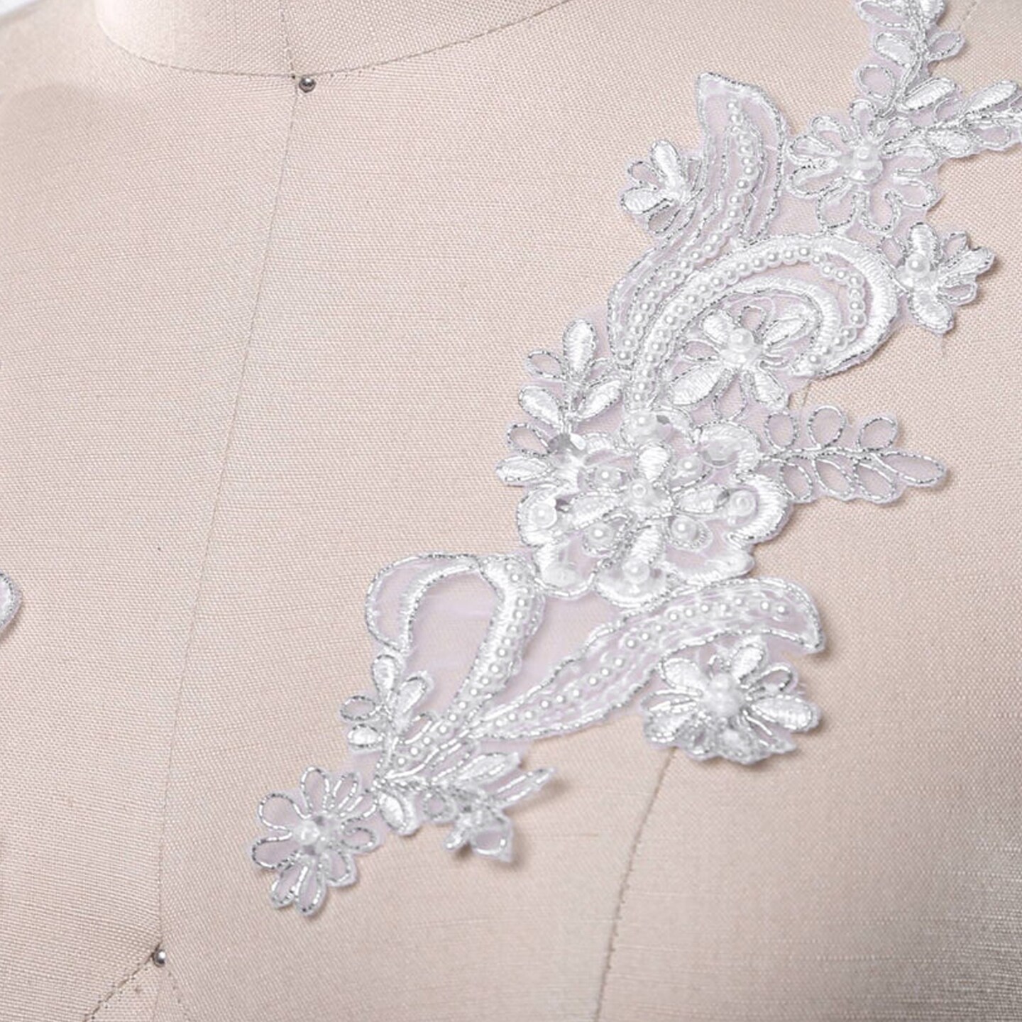 2 Pieces Shimmery White Silver Lace Applique Set With Pearl And Sequin Details 8.5 By 3.5 Inches
