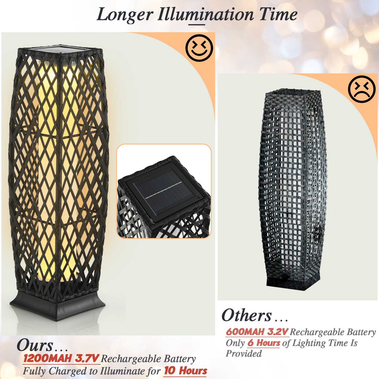 2 Pieces Solar-Powered Diamond Wicker Floor Lamps with Auto LED Light Perfect for Outdoor Use