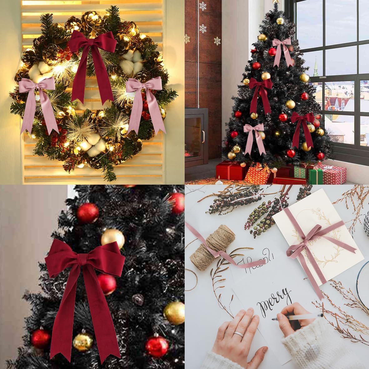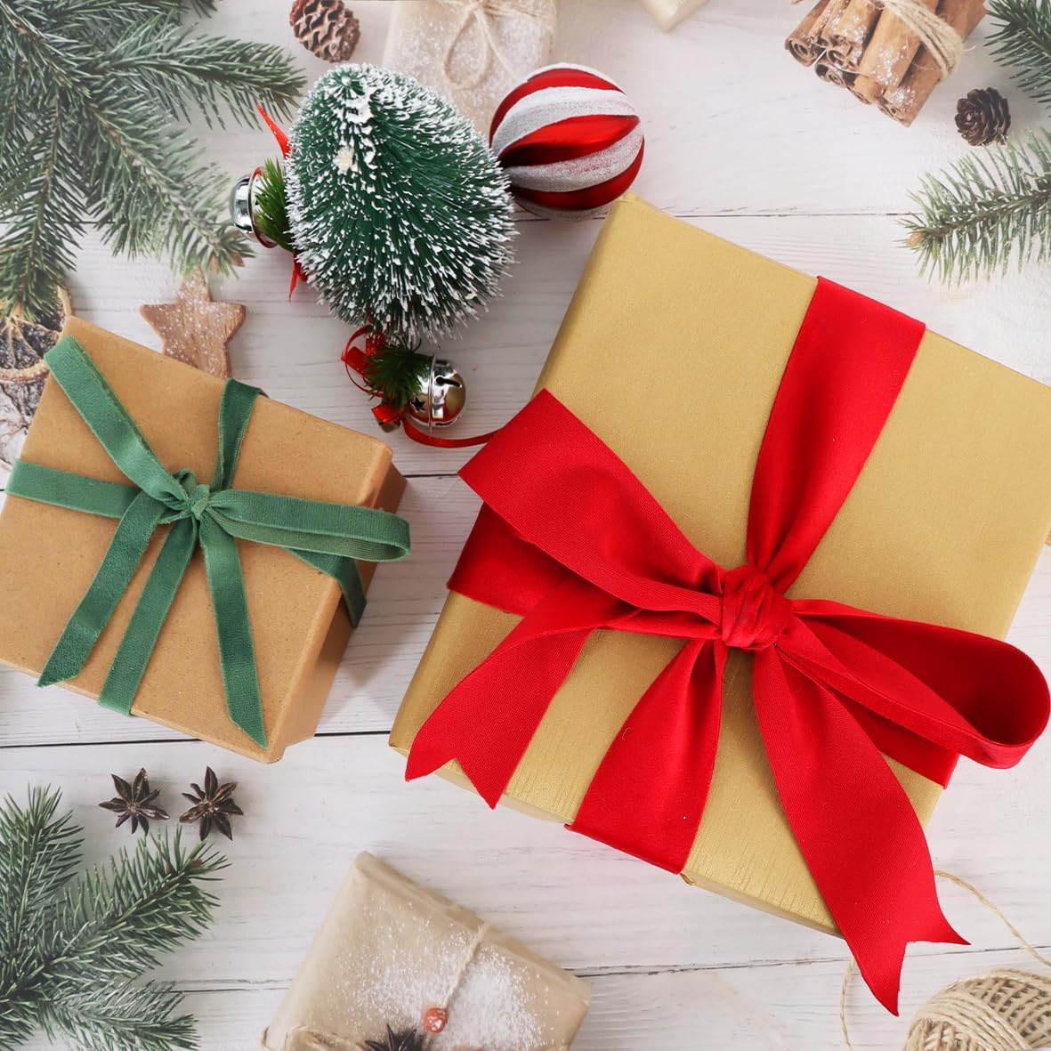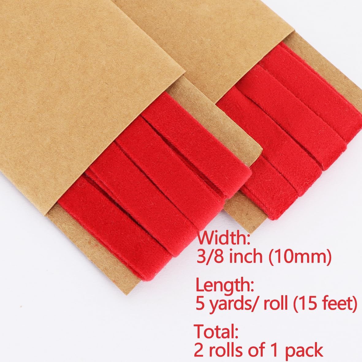 2 Rolls Red Velvet Ribbon 3/8" Fabric Trim Ribbons for Christmas Wreath Tree Decorations Handmade Craft Ornaments Hanging Gift Wrapping Bow Making Valentine Wrapping