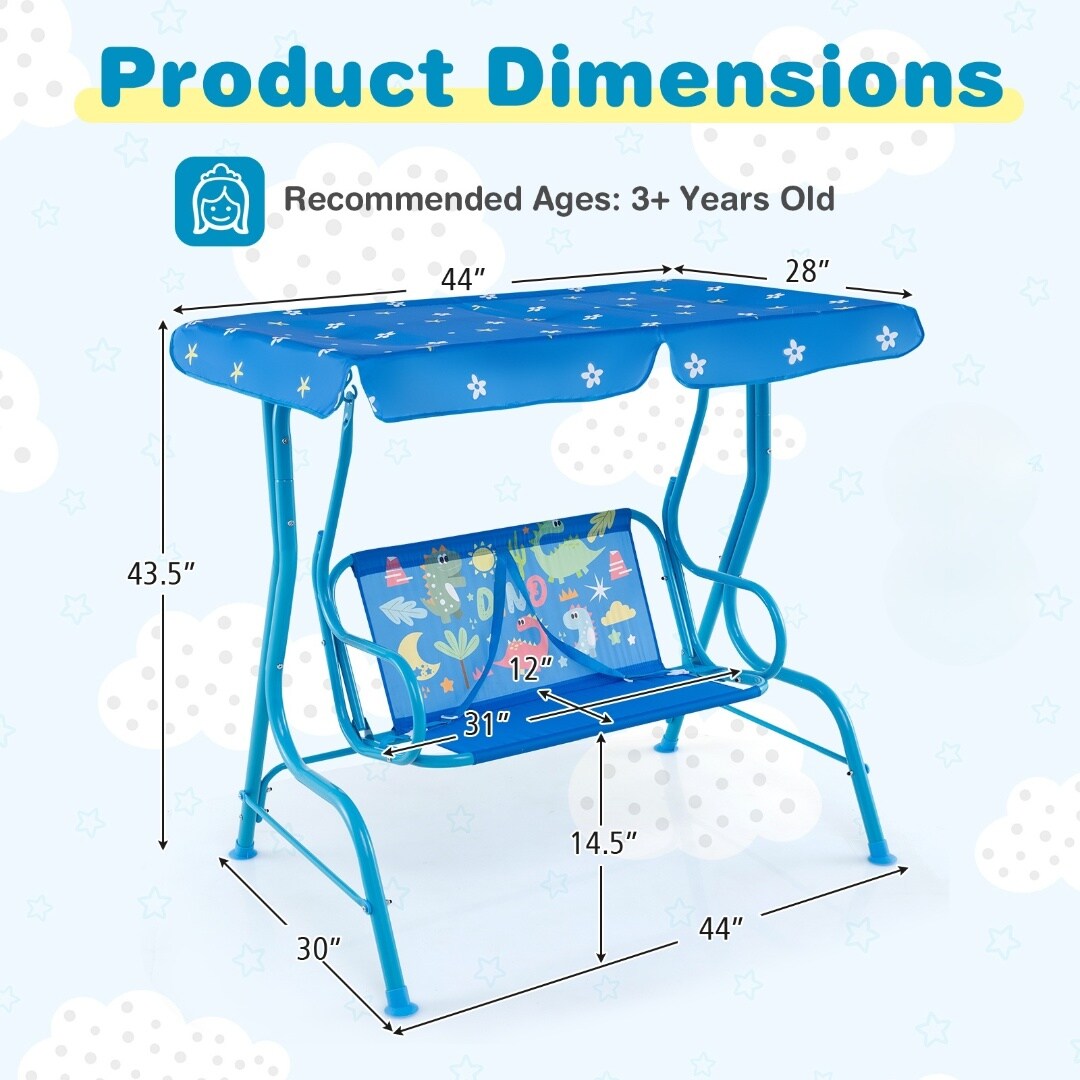 2 Seater Kids Patio Swing with Adjustable Canopy, Metal Frame and Safety Belts