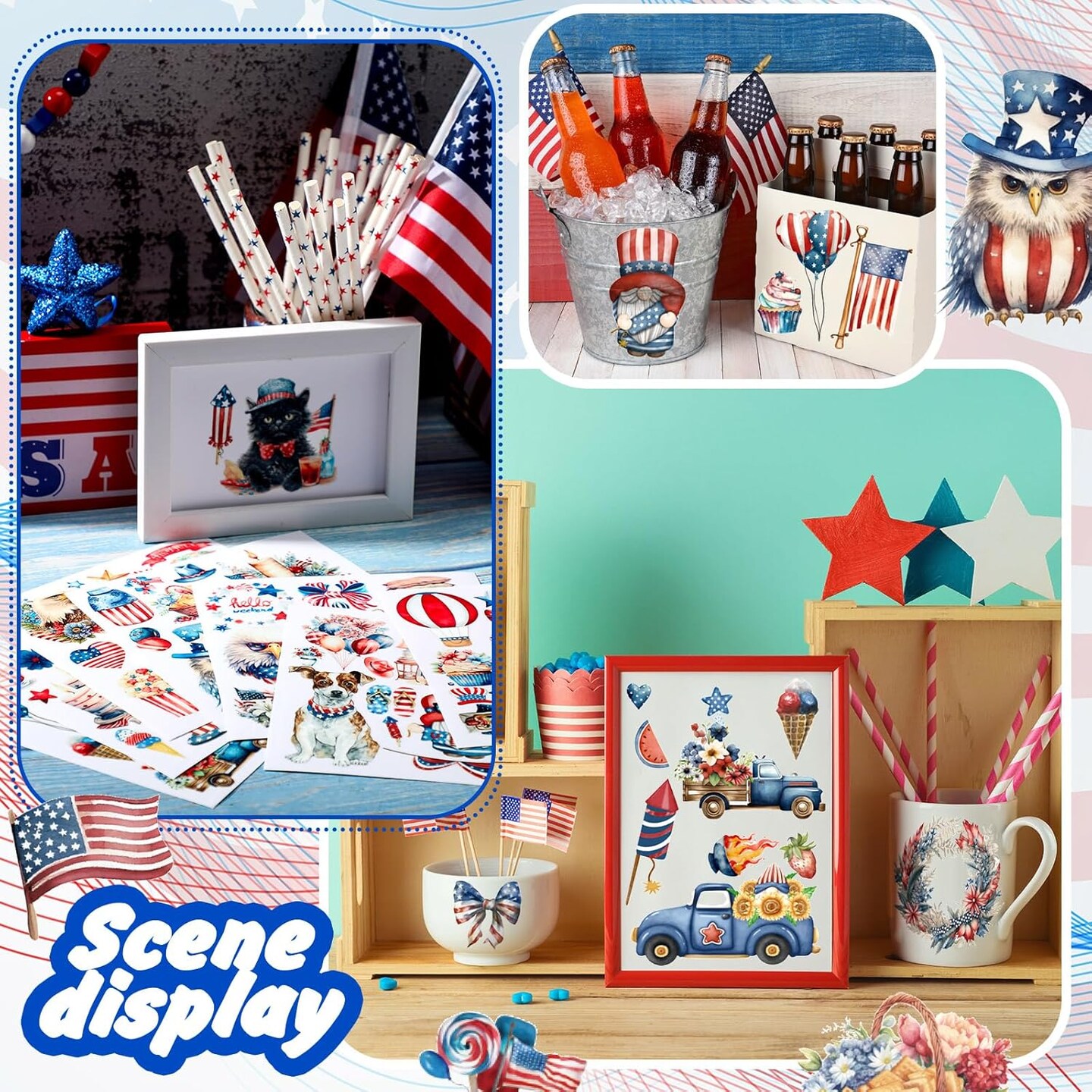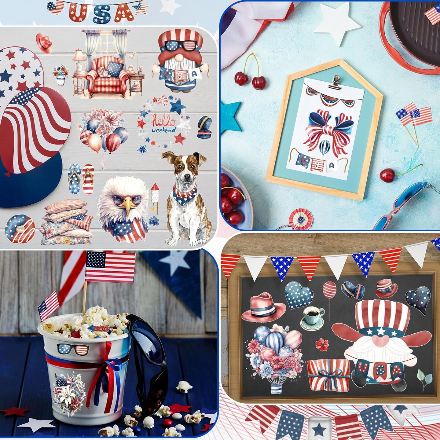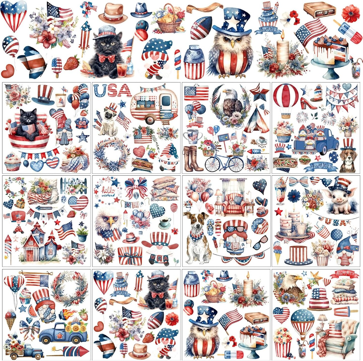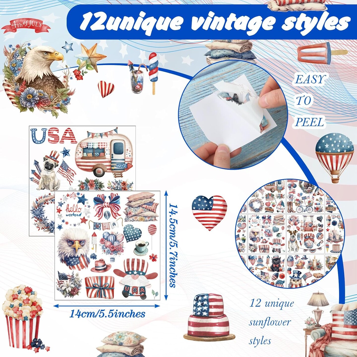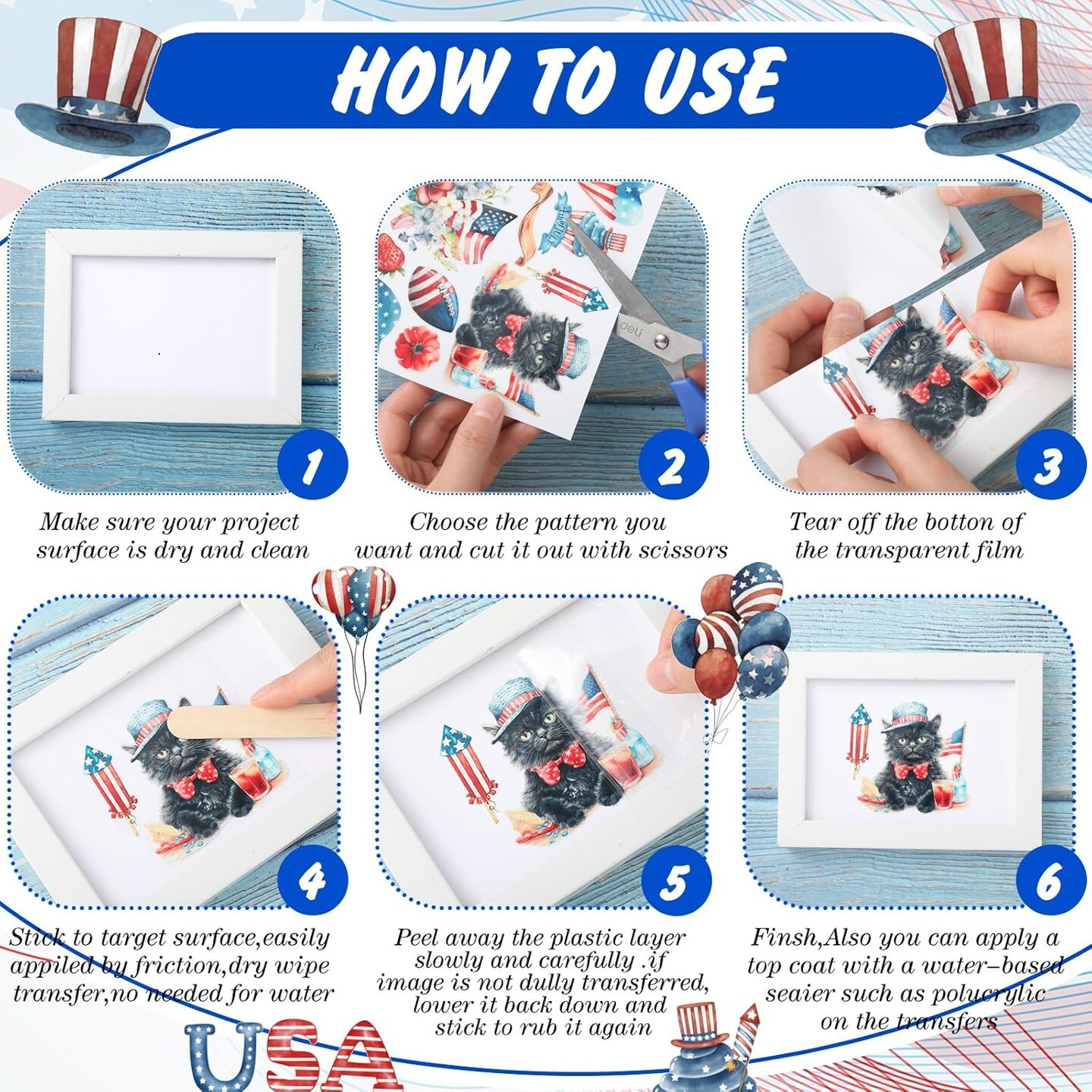 2 Sheets 4th of July Rub on Transfer Stickers (5.5 x 5.7 Inch)