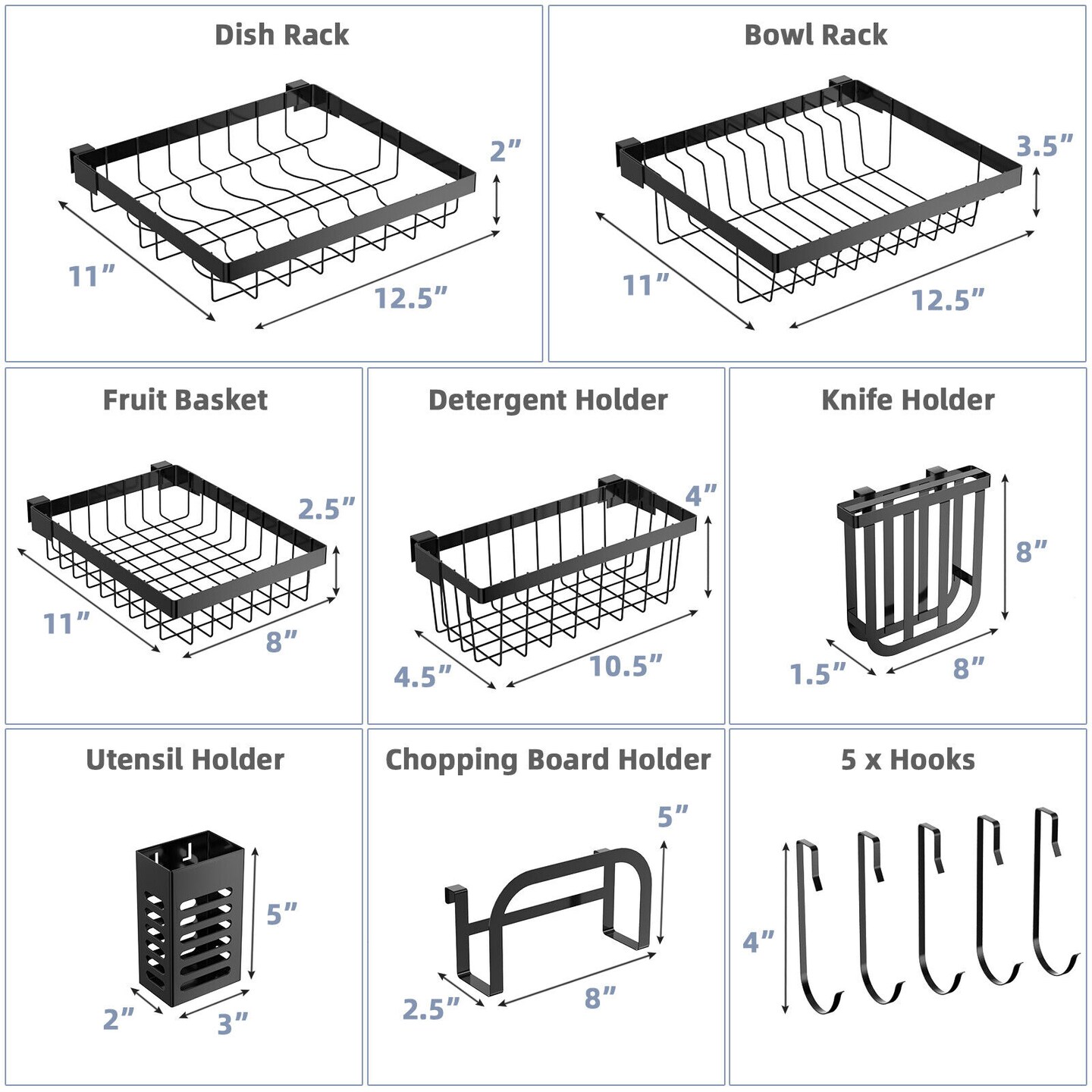 2 Tier Adjustable Over Sink Dish Drying Rack with 8 Hooks