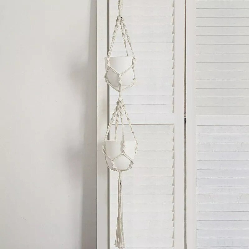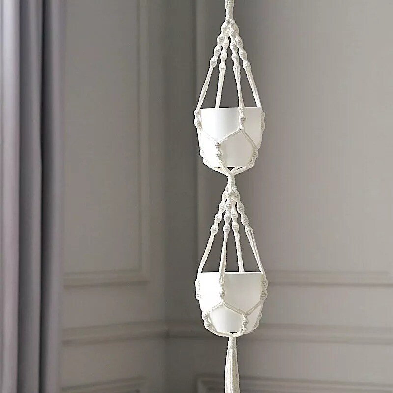 2 Tier Ivory Cotton Rope Macrame Indoor Pot Holder Planter Hanger Party Supplies