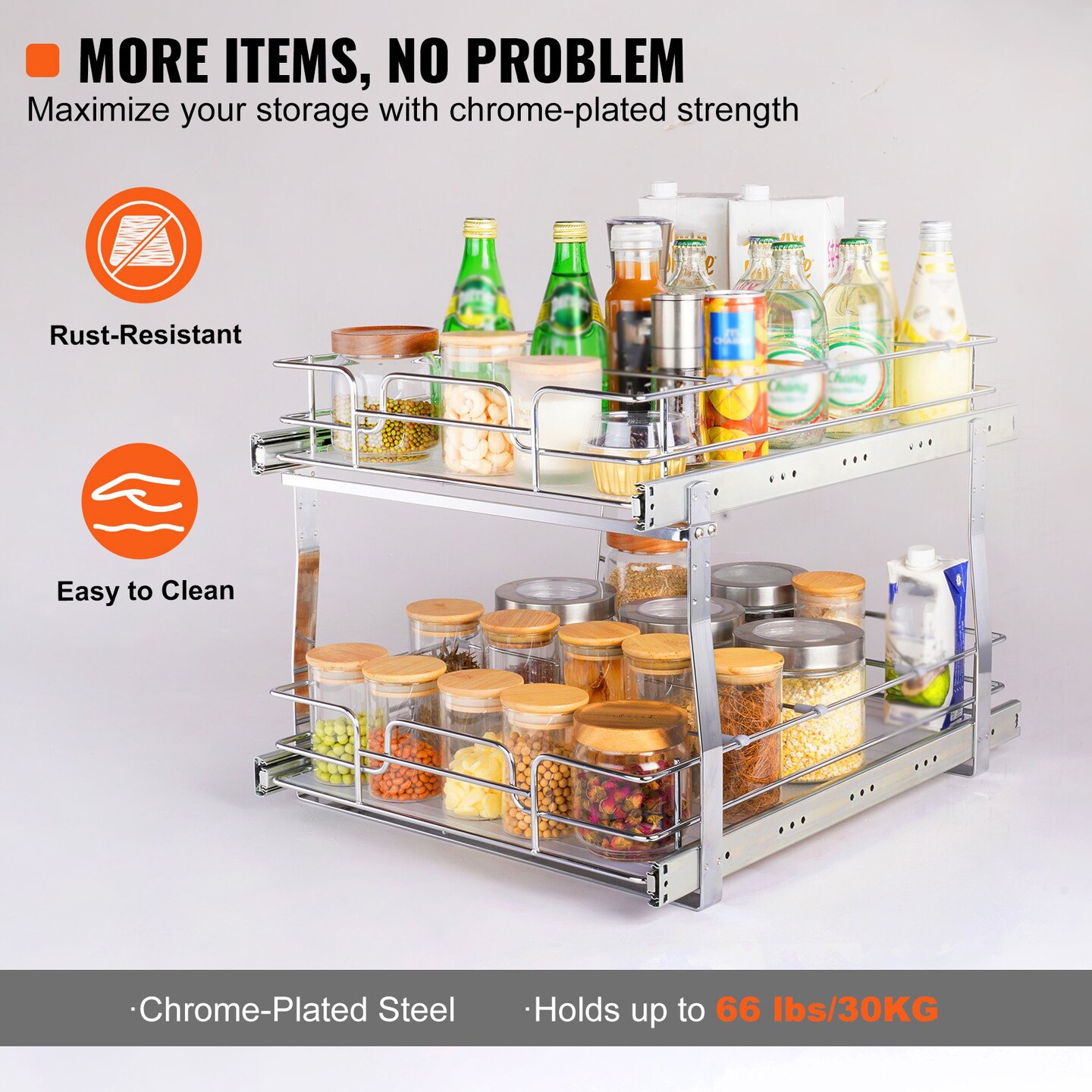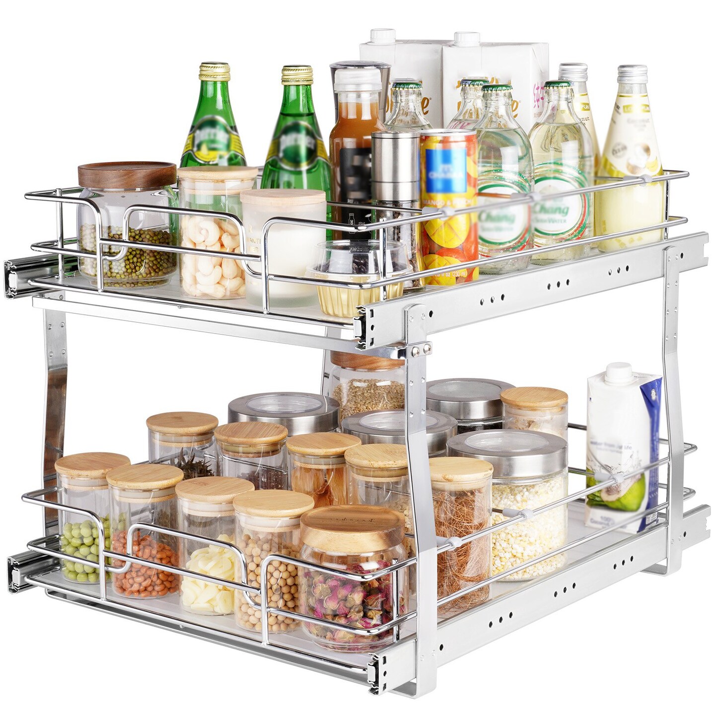 2 Tier Pull Out Cabinet Organizer Slide Out Pantry Shelves