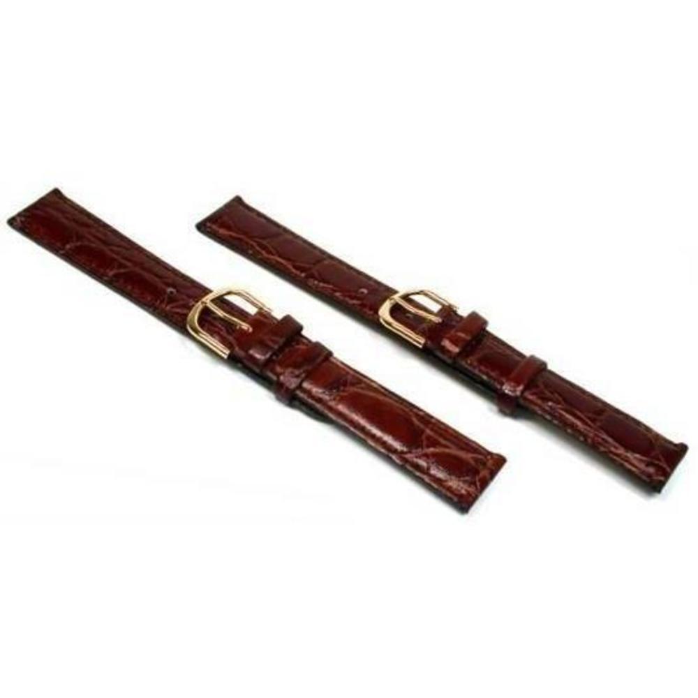 2 Watch Bands Leather Croco Grain Padded Brown 18mm