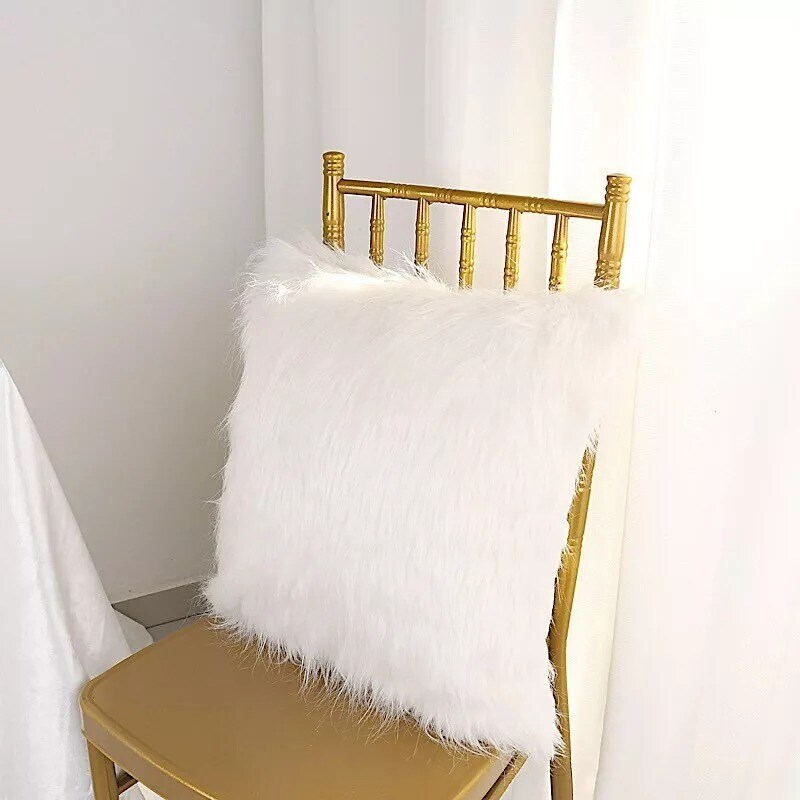 2 White 18x18 Faux Fur Throw Pillow Covers Square Cushion Cases Home Decorations