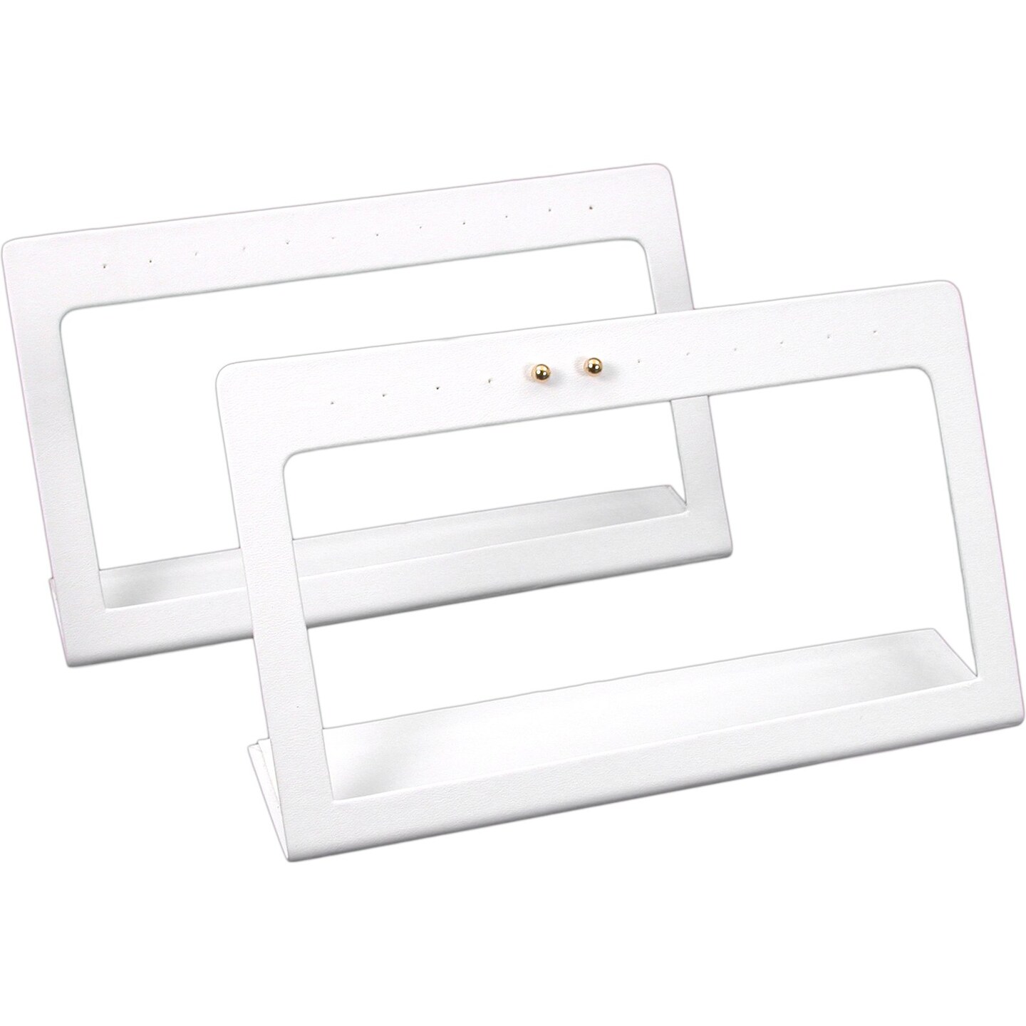 2 White Leather 6 Pairs Earring Display Stands 7 5/8"