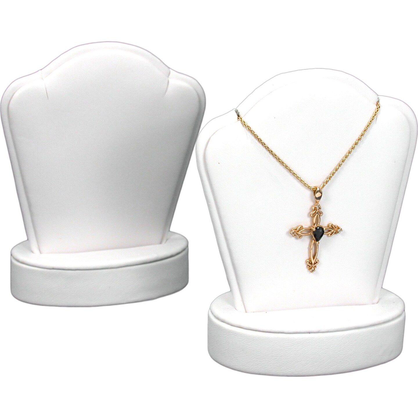 2 White Leather Pendant Necklace Displays Jewelry Case