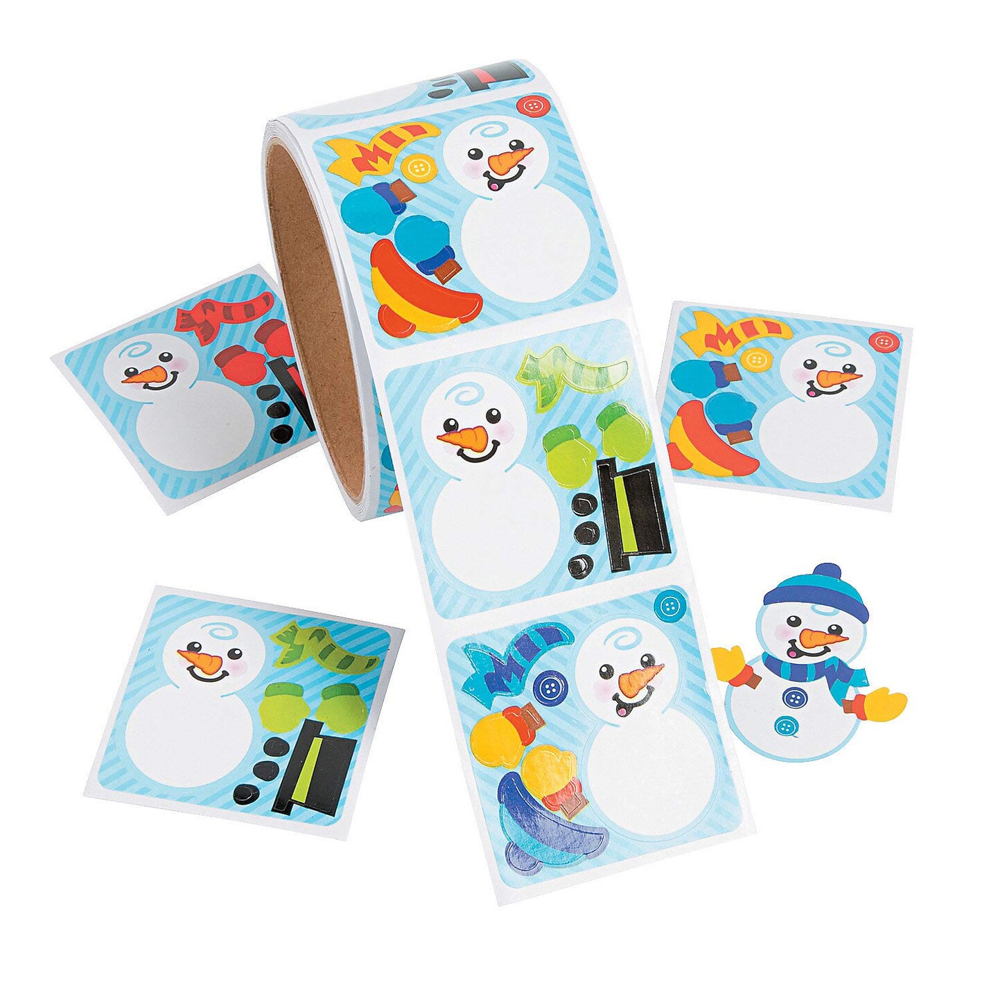 2" x 2" Mini Dress-a-Snowman Paper Sticker Roll 50 Pc