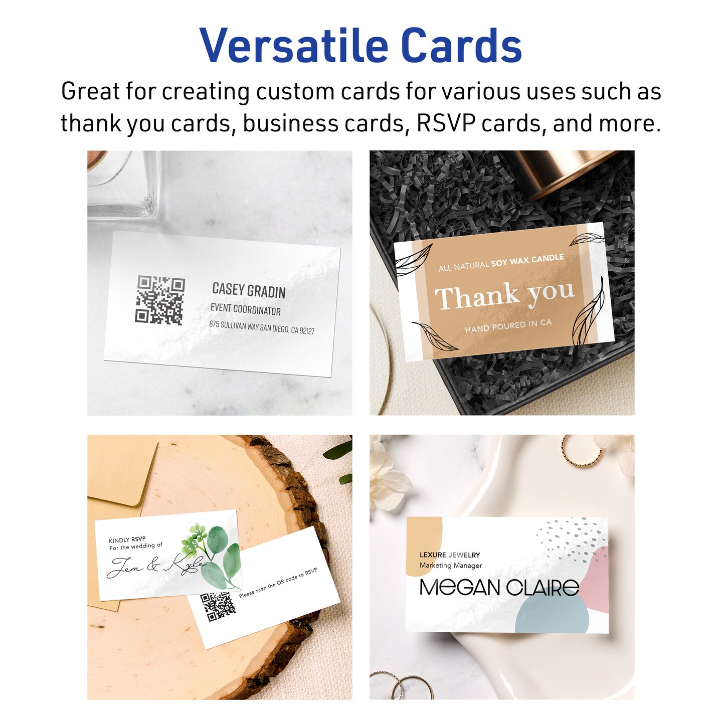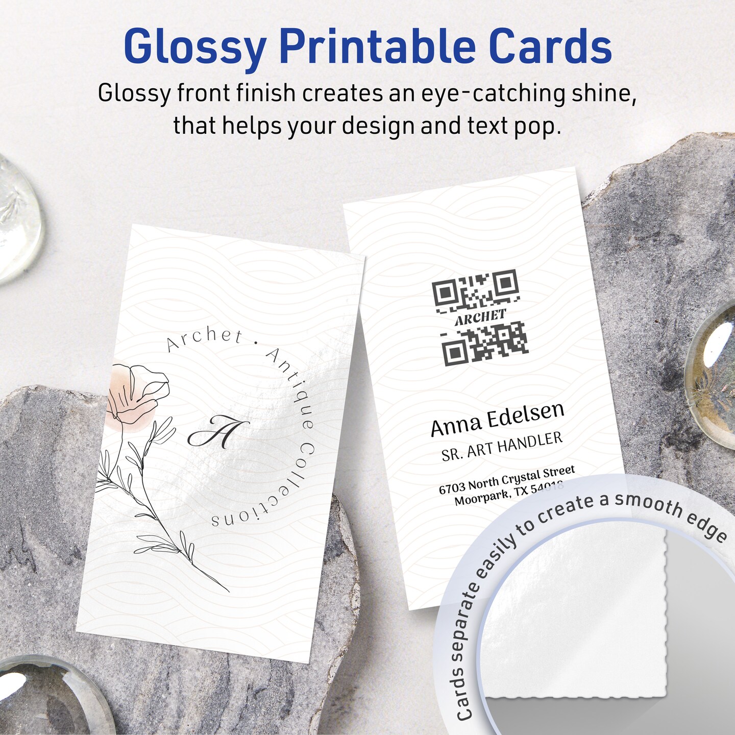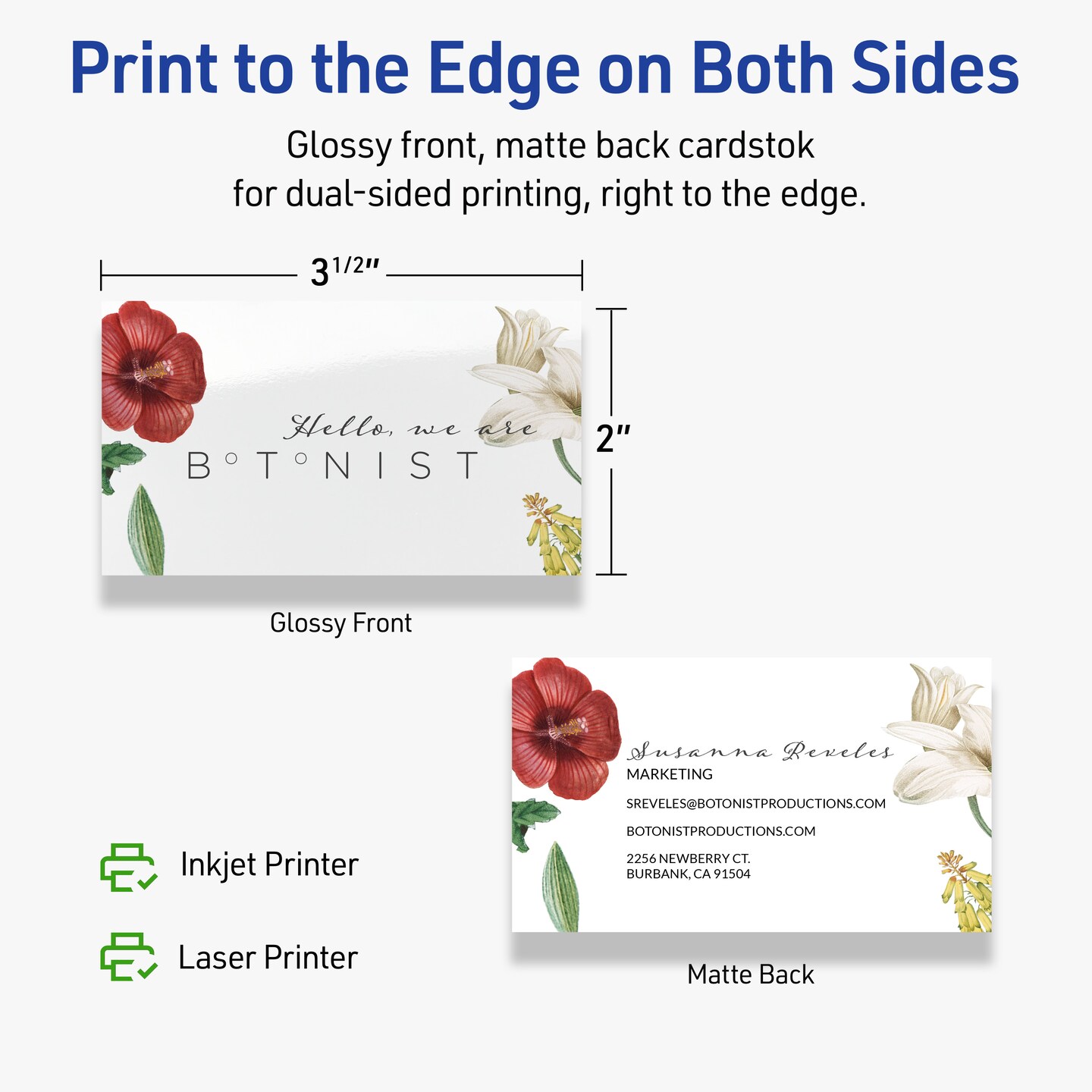 2" x 3-1/2" Rectangle, Glossy White Business Cards