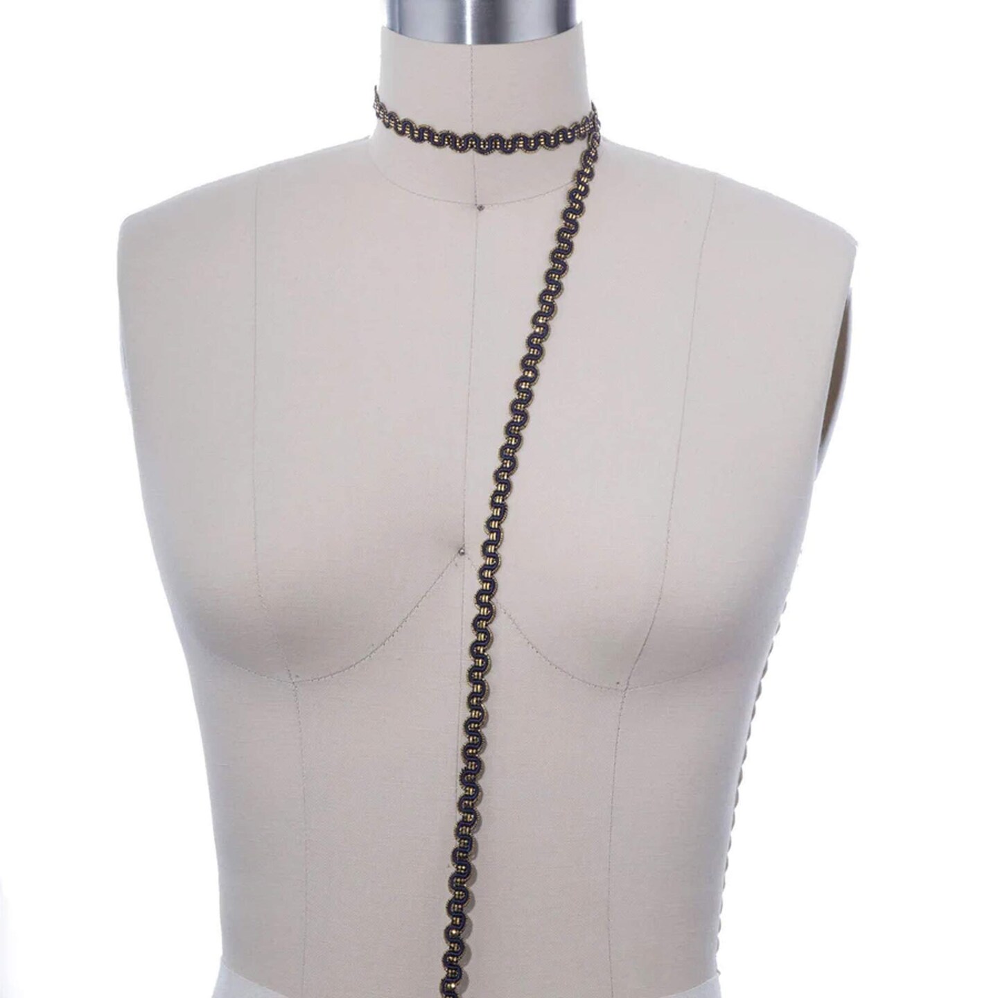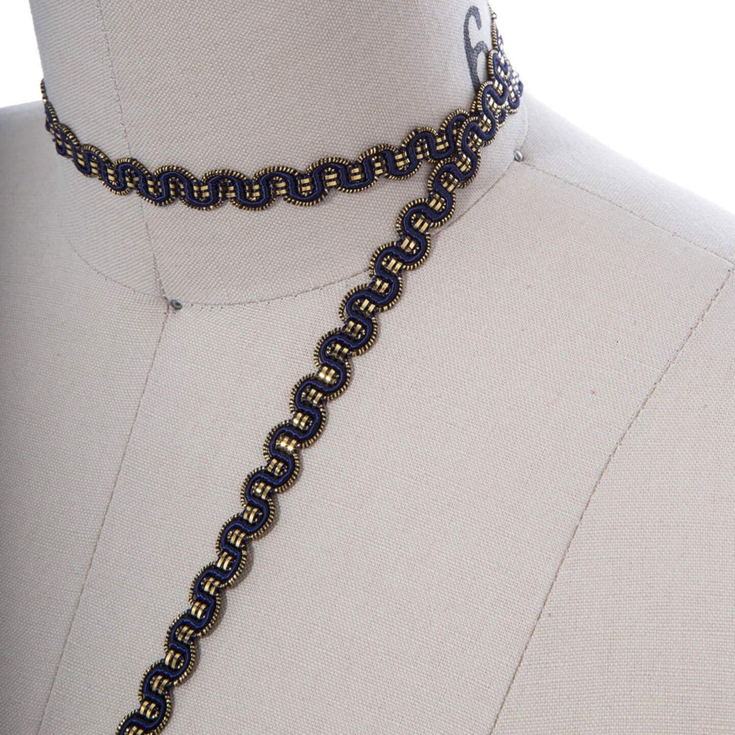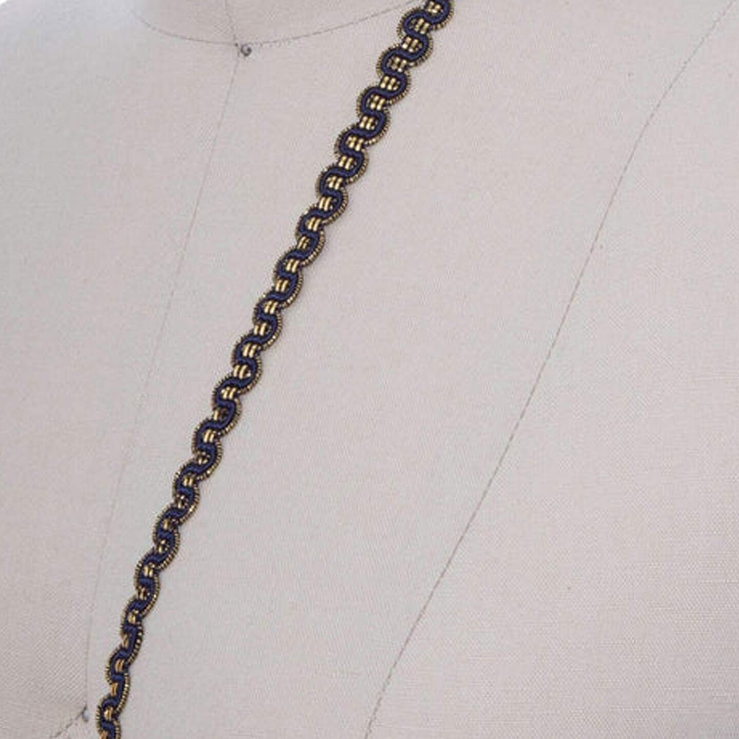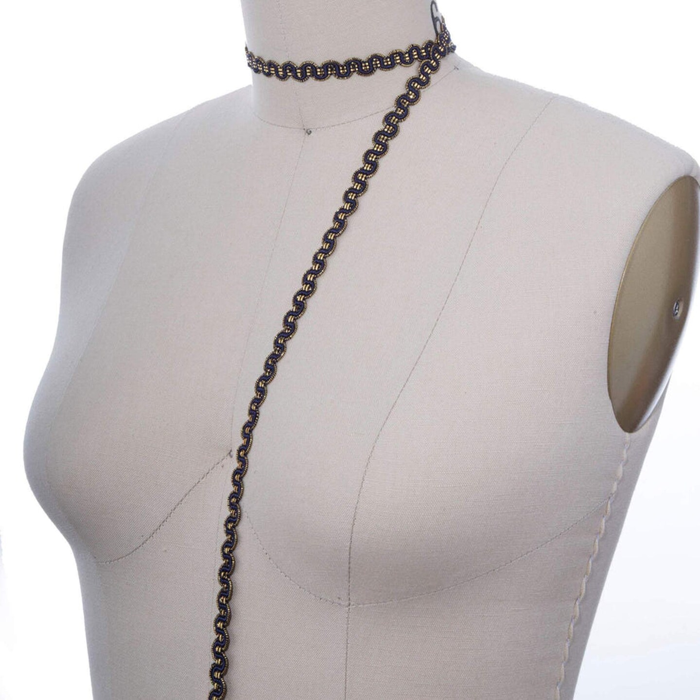 2 Yard 3/8" Navy & Metallic Gold Scroll Upholstery Gimp Trim