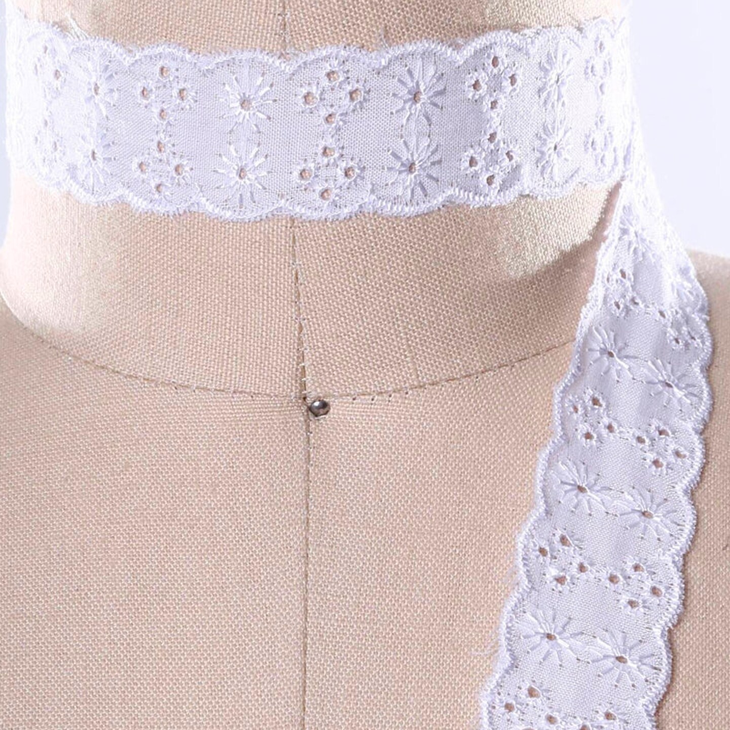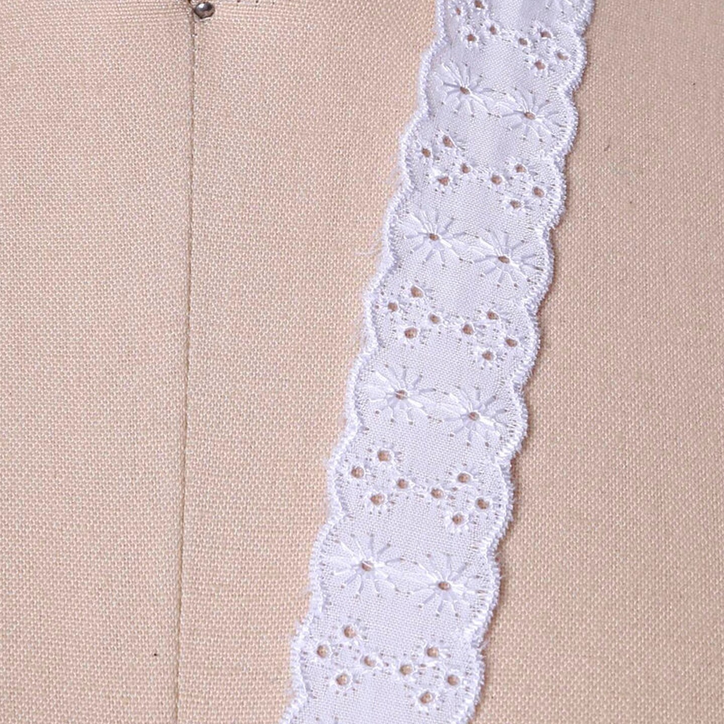 2 Yard White Daisy Eyelet Cotton Lace Trim 2 Inch Width Floral Embroidered Scallop