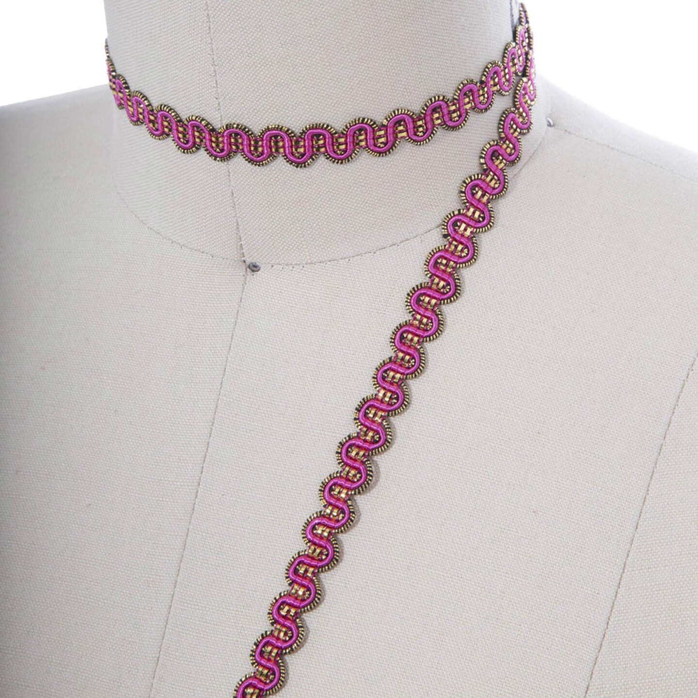 2 Yards 3/8 Inch Fuchsia and Gold Gimp Trim for Drapes Upholstery and Decorative Projects