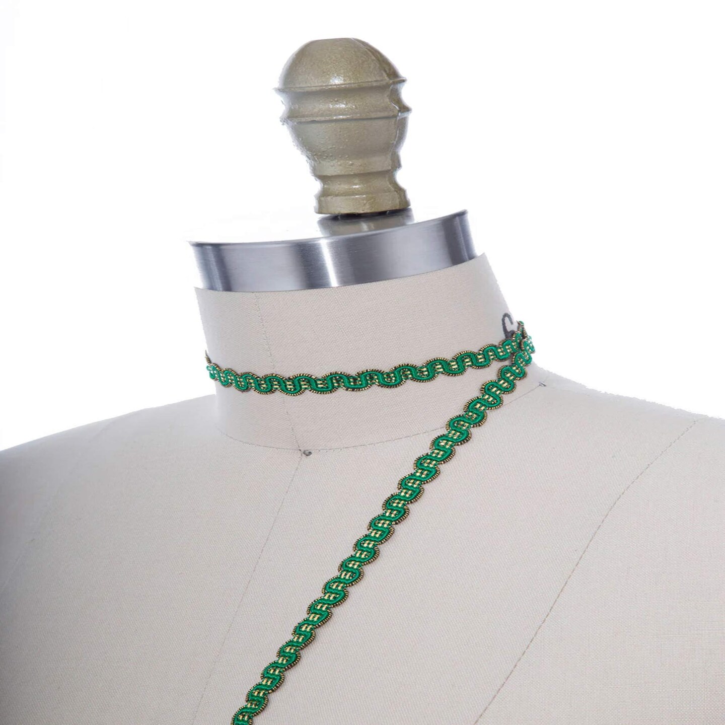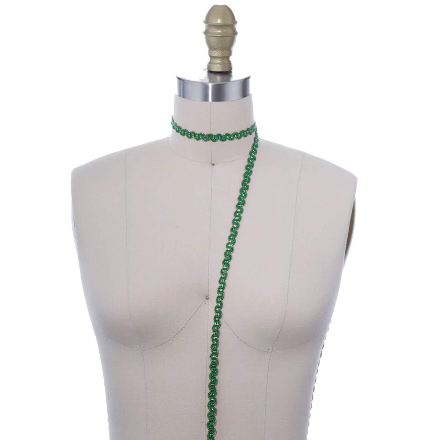 2 Yards 3/8 Inch Green and Gold Gimp Trim for Drapes Pillows Upholstery and Décor Projects