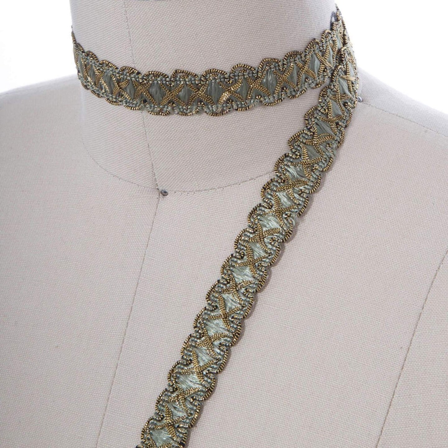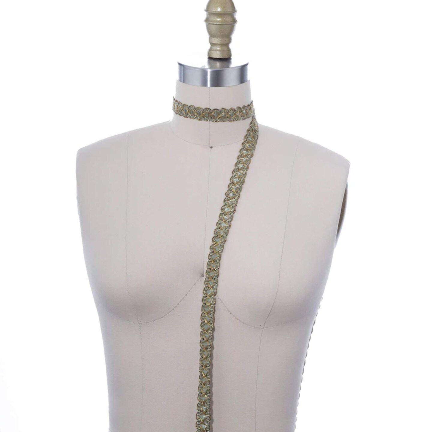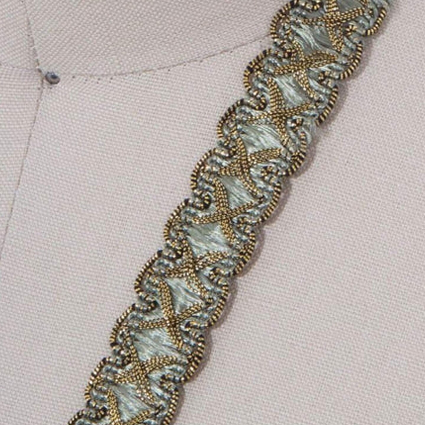 2 Yards 5/8" Width Sea Foam Green and Antique Gold Braided Upholstery Gimp Trim