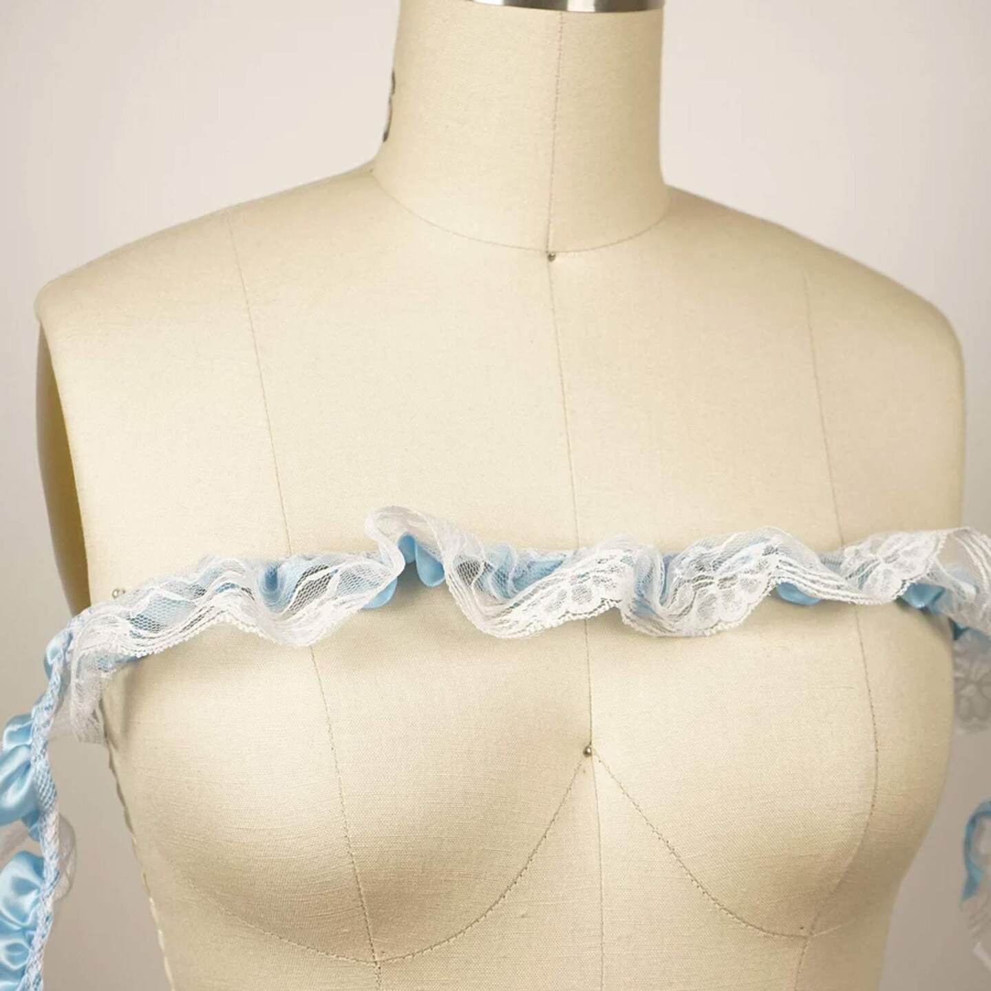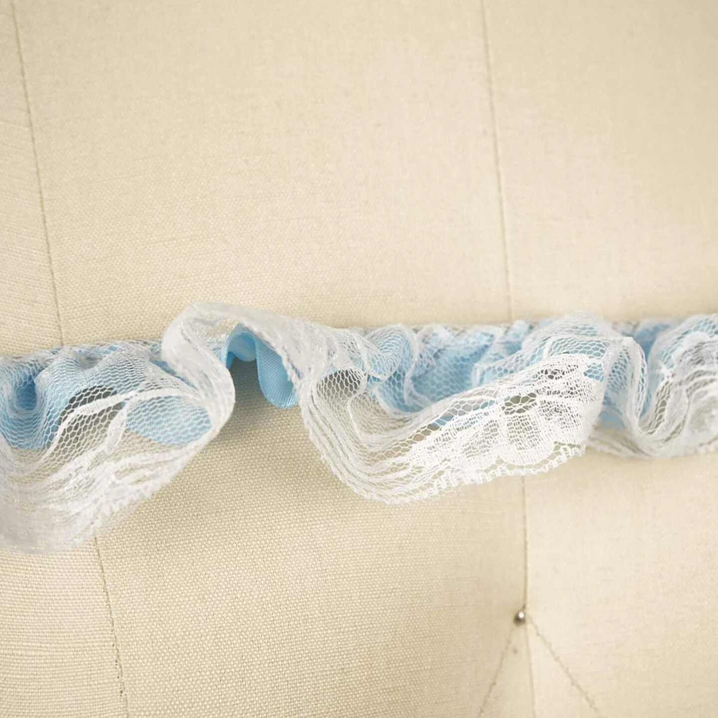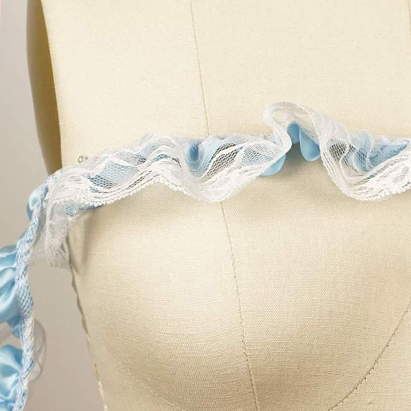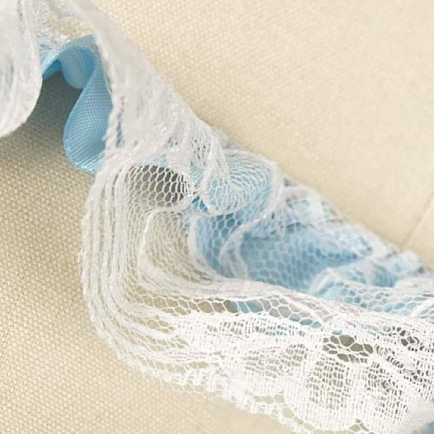 2 Yards Baby Blue Ruffle Satin Trim Polyester Lace Overlay