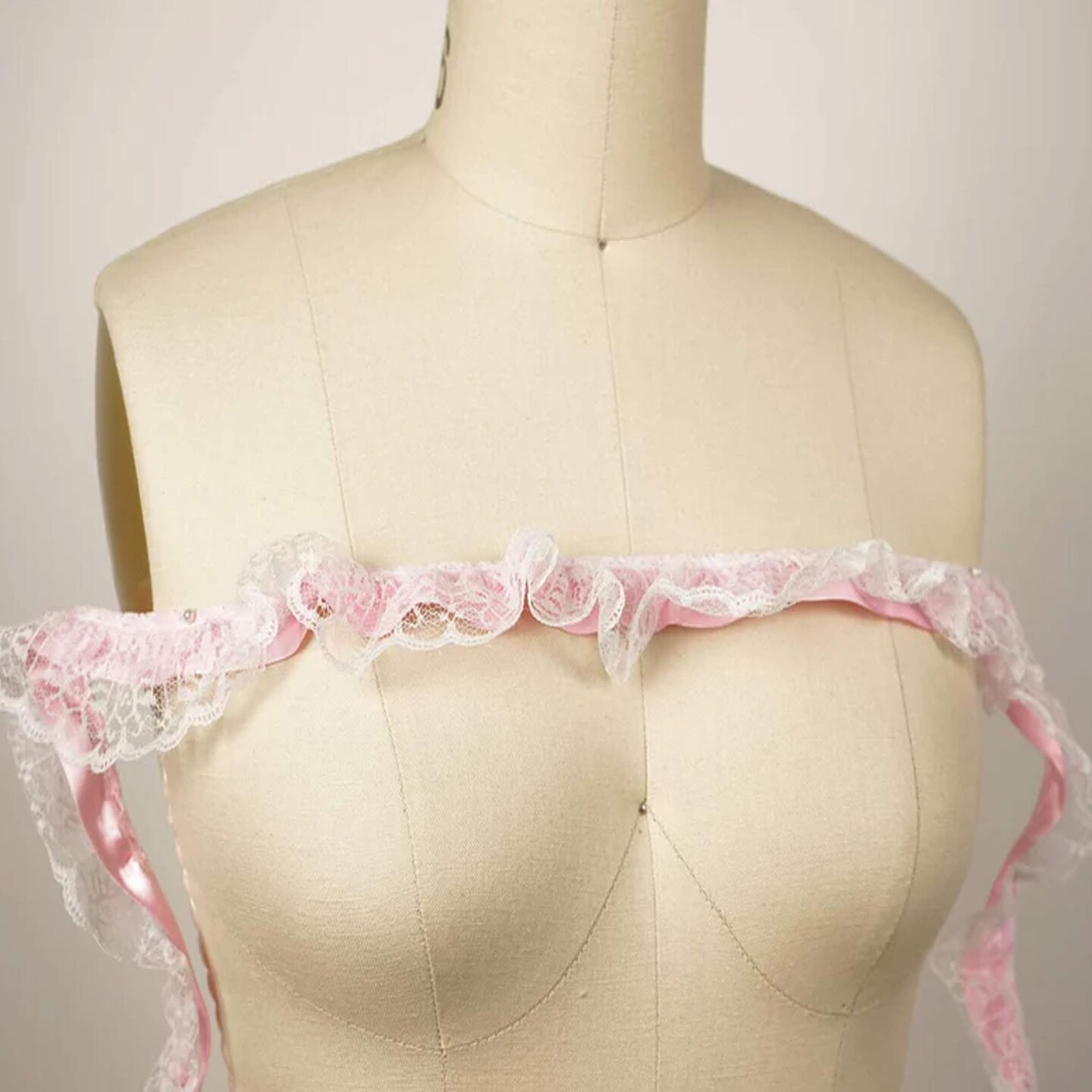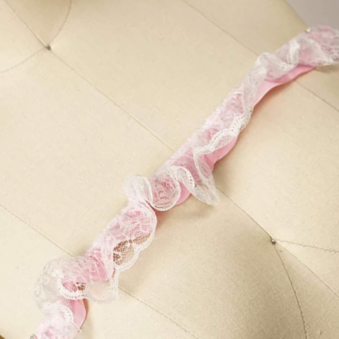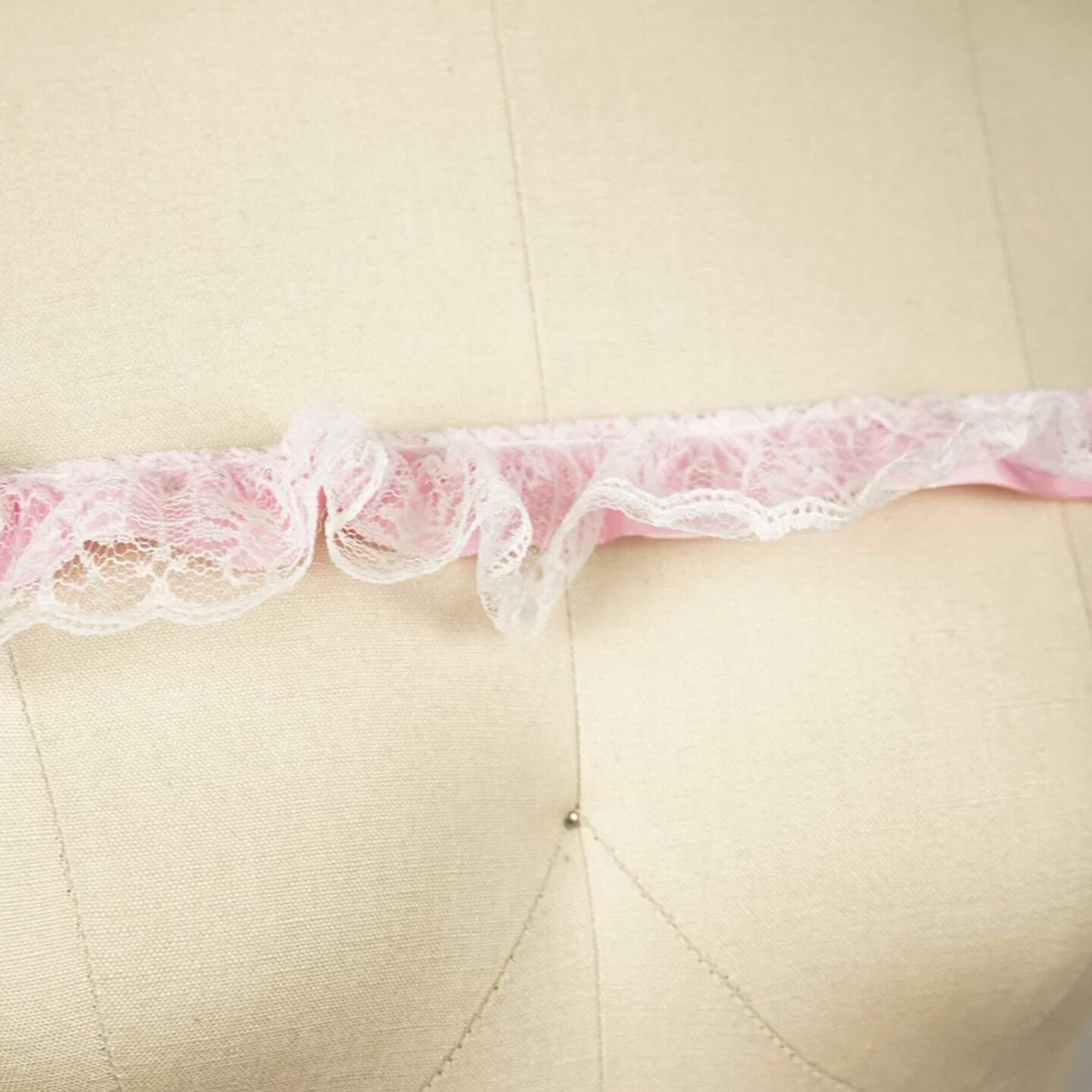 2 Yards Baby Pink Ruffle Satin Trim Polyester Lace Overlay