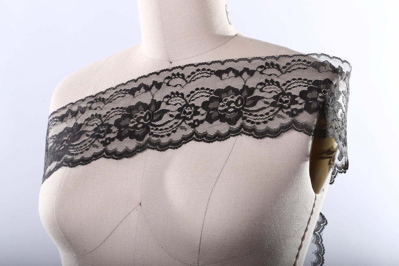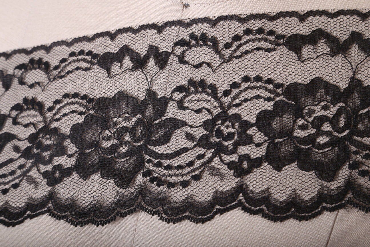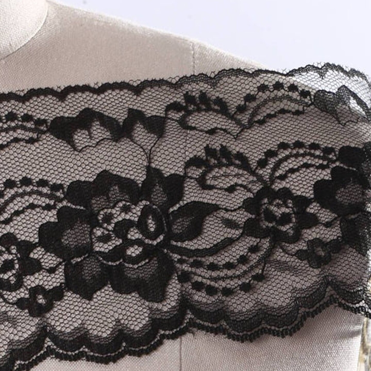 2 Yards Black Floral Polyester Lace Trim for Decor and Crafting
