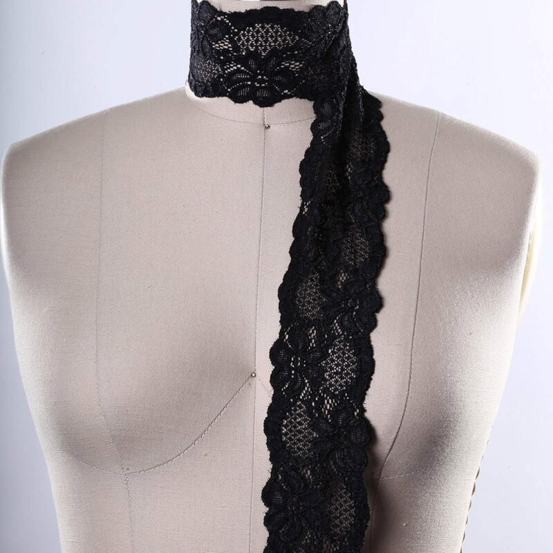 2 Yards Black Stretch Lace Trim 2.5" Wide Floral Elastic for Lingerie Bralettes & Sewing Crafts