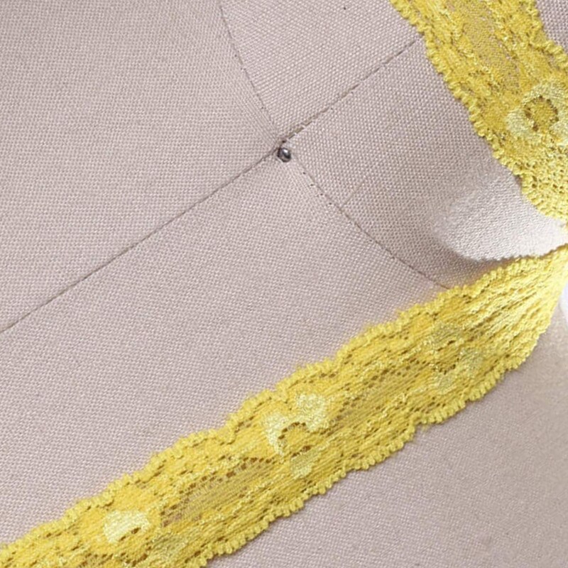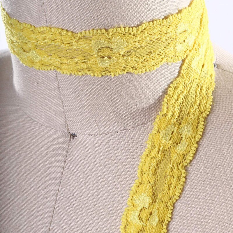 2 Yards Bright Yellow Stretch Lace Trim 7/8" Floral Elastic Ribbon for Lingerie Sewing & Crafts