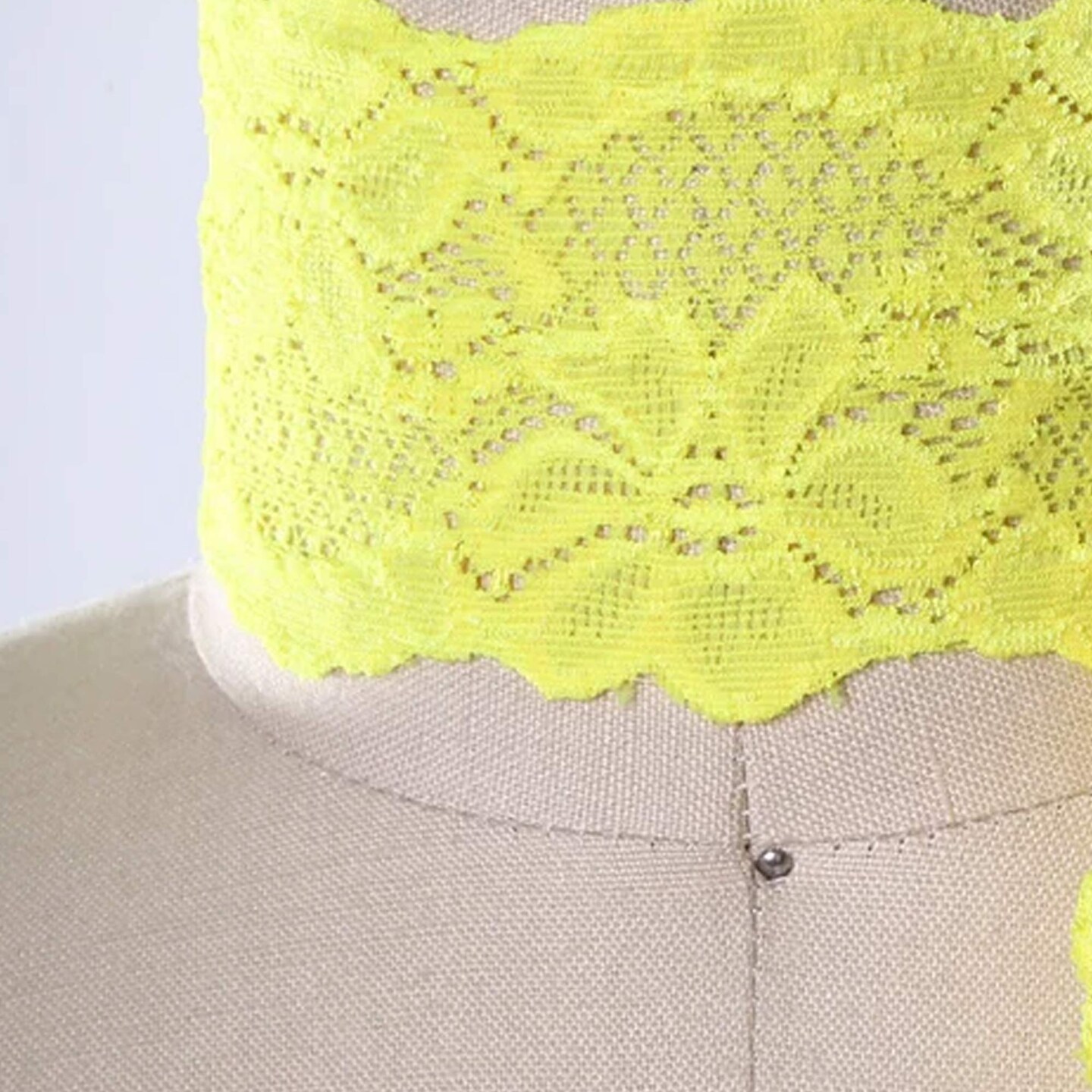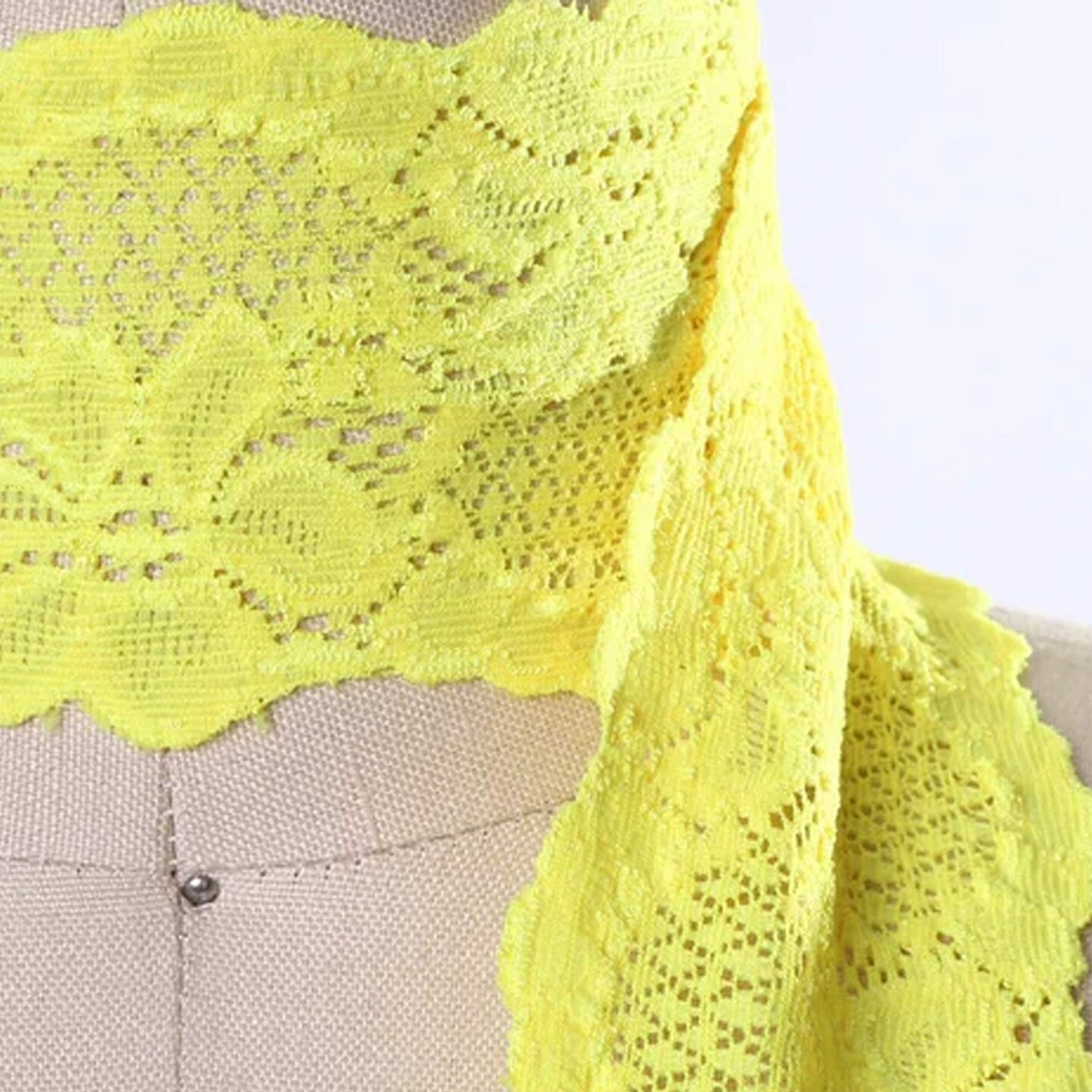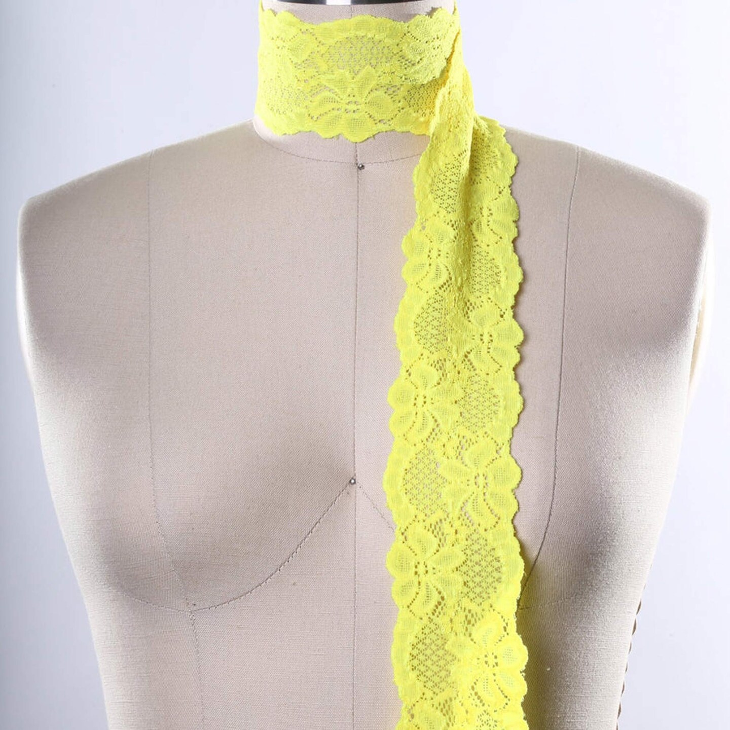 2 Yards Bright Yellow Wide Stretch Floral Elastic Lace Trim 2.5 Inch Wide