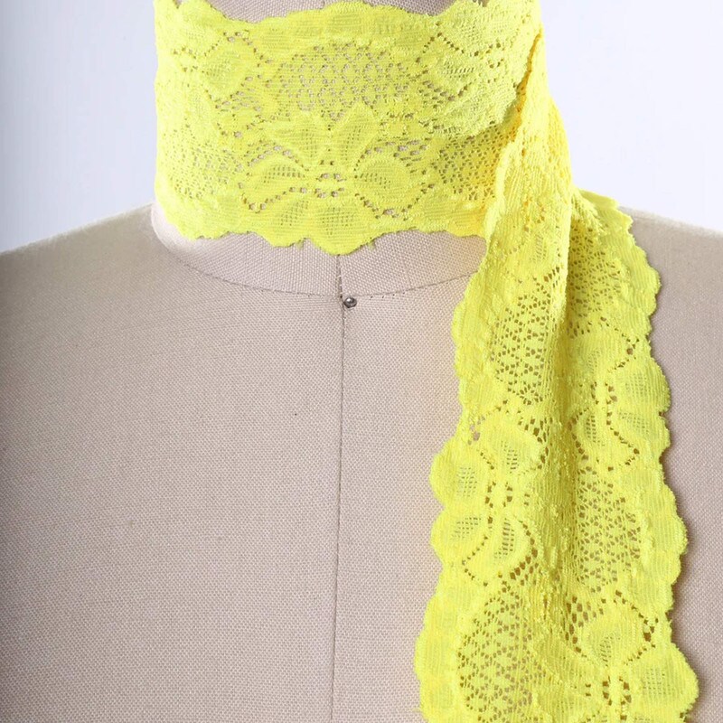2 Yards Bright Yellow Wide Stretch Lace Trim 2.5" Floral Elastic for Lingerie Sewing & Crafts