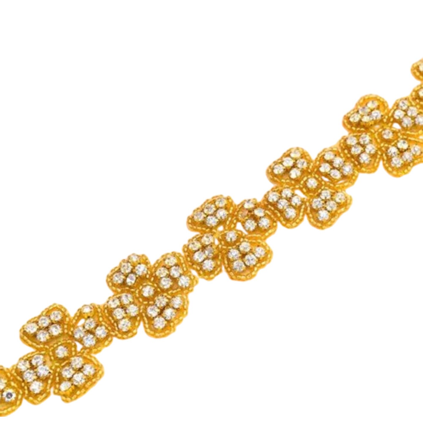 2 Yards Emmaline’s Four Petal Flower Rhinestone Trim with Iron On Backing Gold 1.5 inch Wide