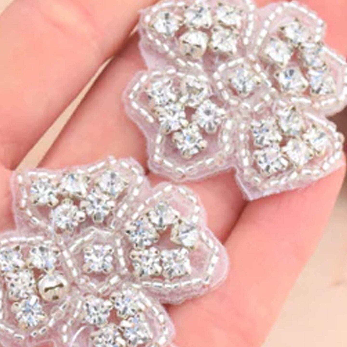 2 Yards Emmaline’s Four Petal Flower Rhinestone Trim with Iron On Backing Silver 1.5 inch Wide