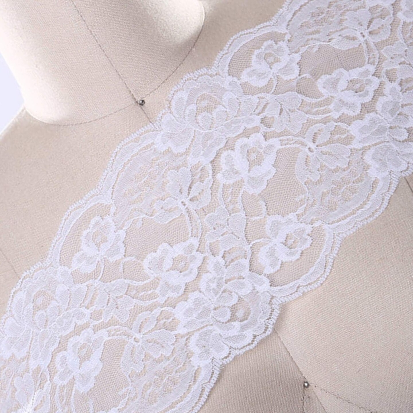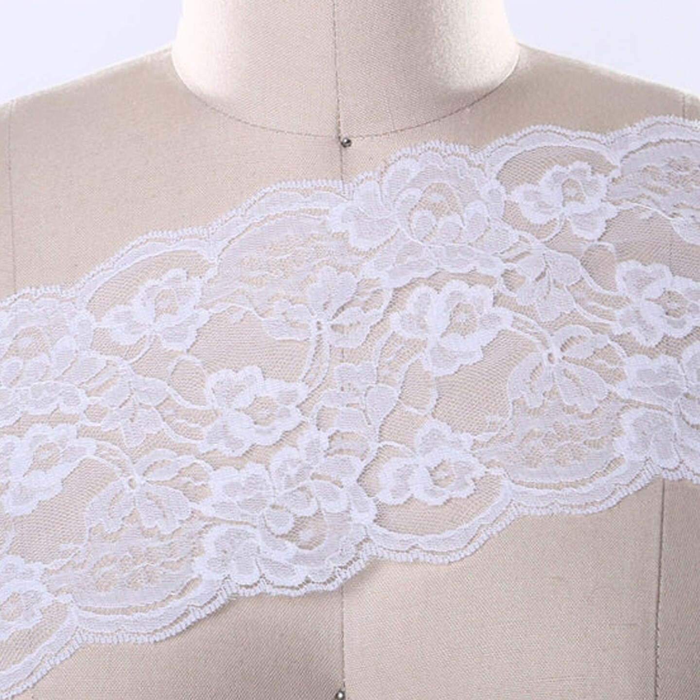 2 Yards Exquisite White Polyester Double Scalloped Floral Lace Trim 5 Inch Wide