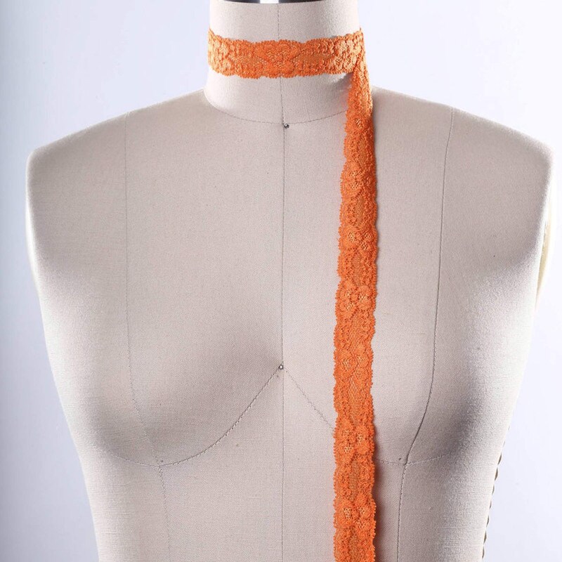 2 Yards Fire Orange Stretch Lace Trim 7/8" Floral Elastic Ribbon for Sewing Lingerie & Crafts