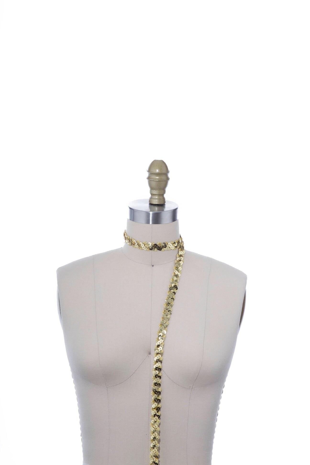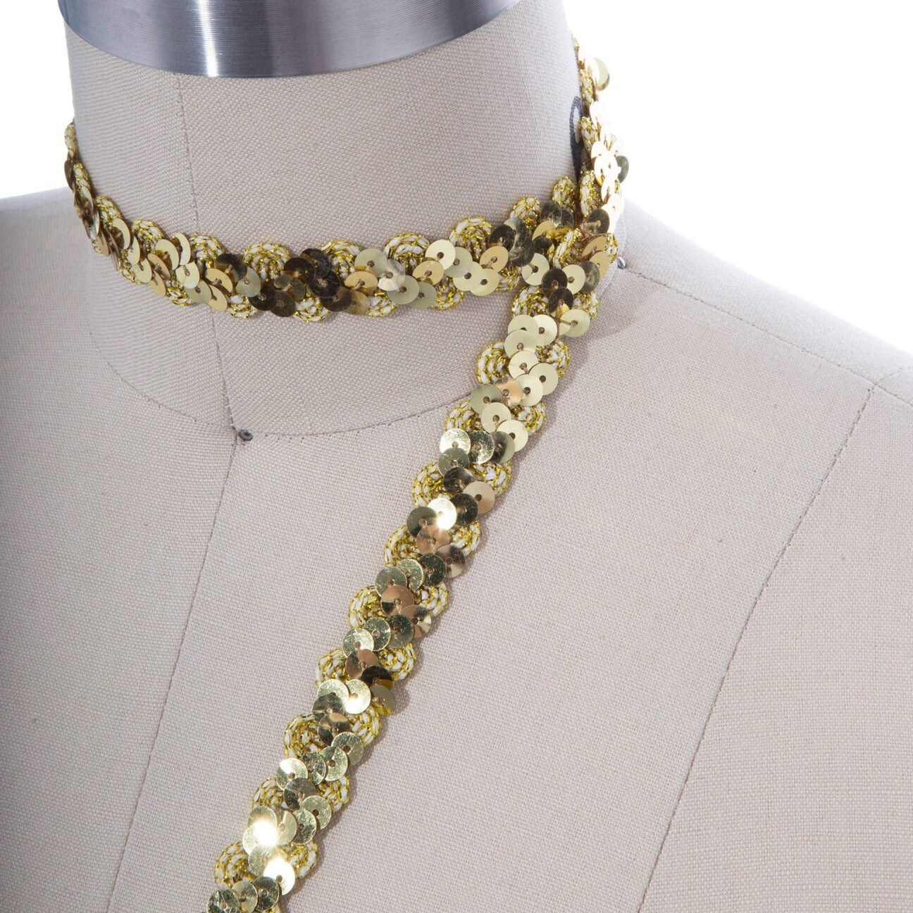 2 Yards Glittery Gold Non Stretch Sequin Banded Ribbon Lace Trim 1 Inch Wide