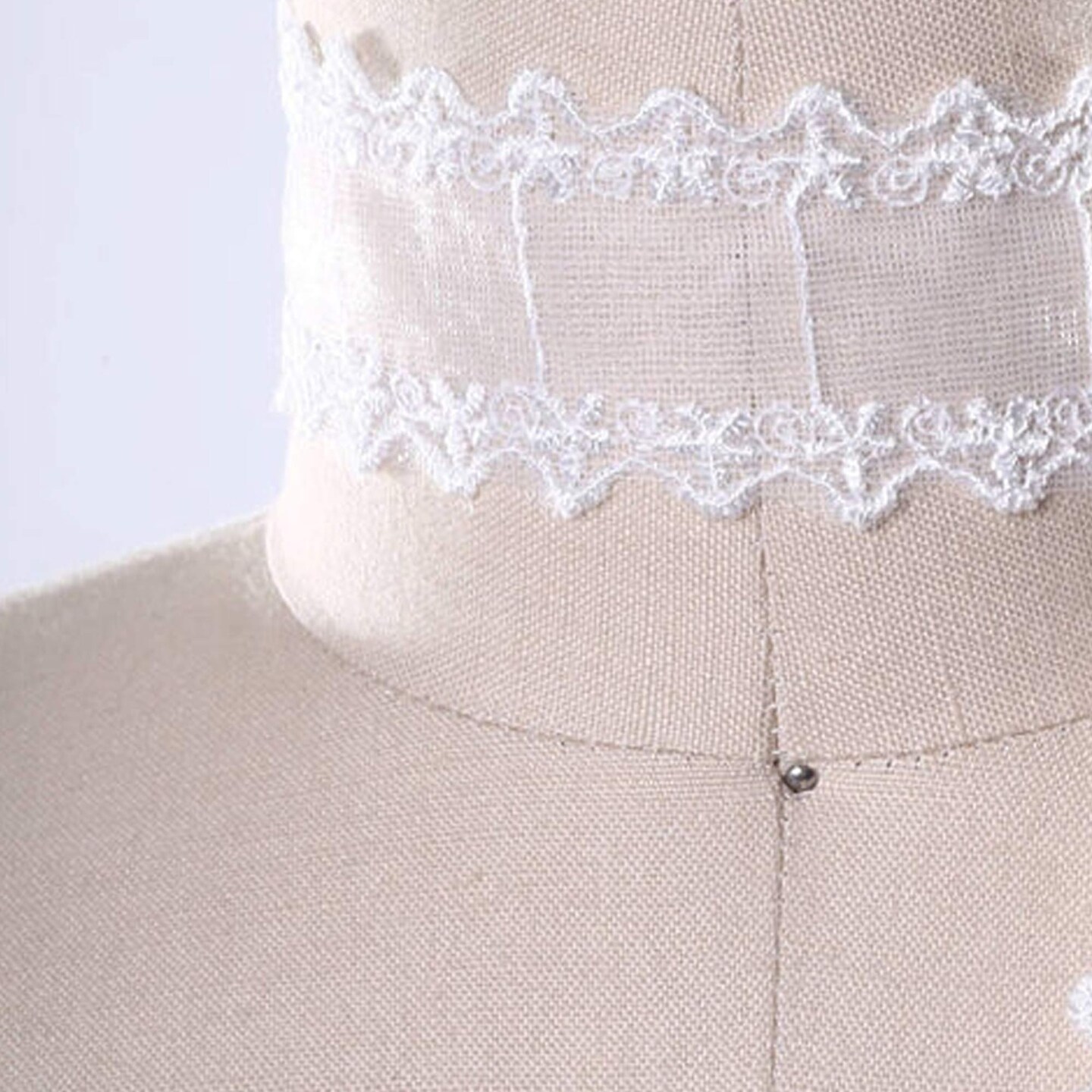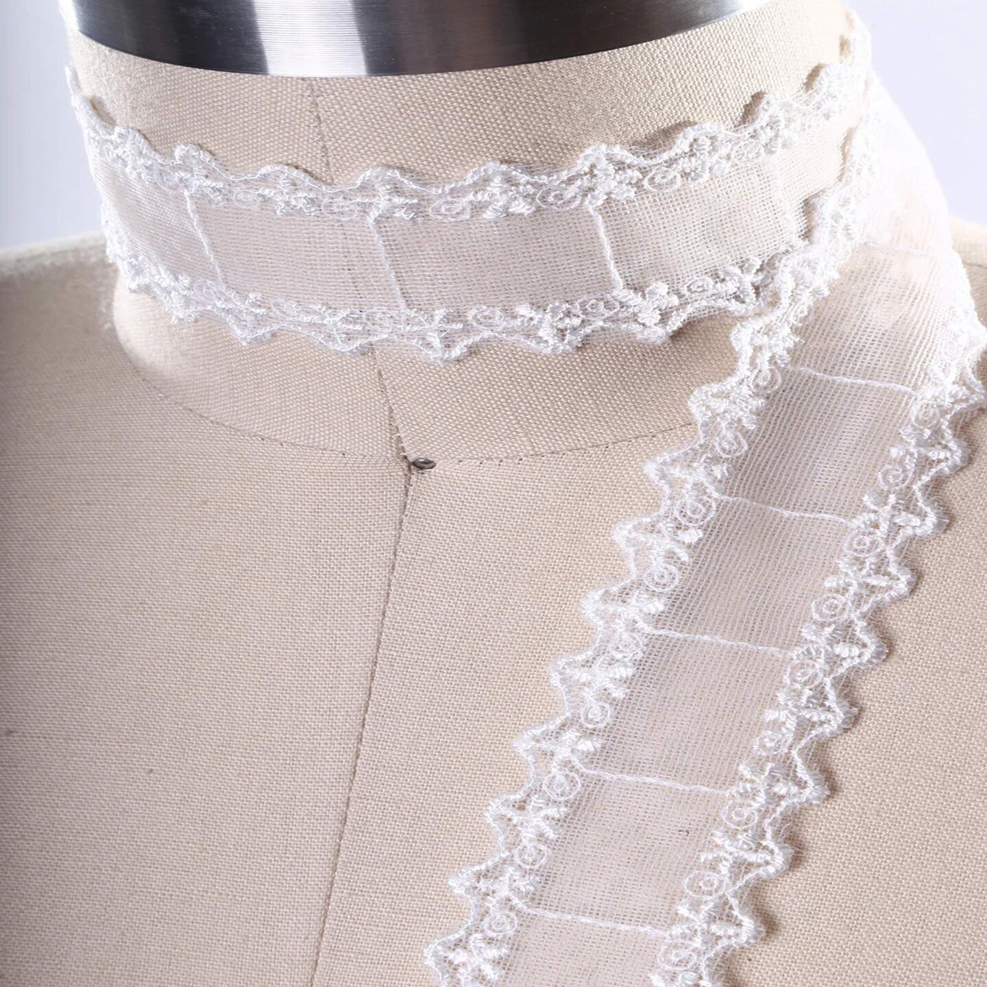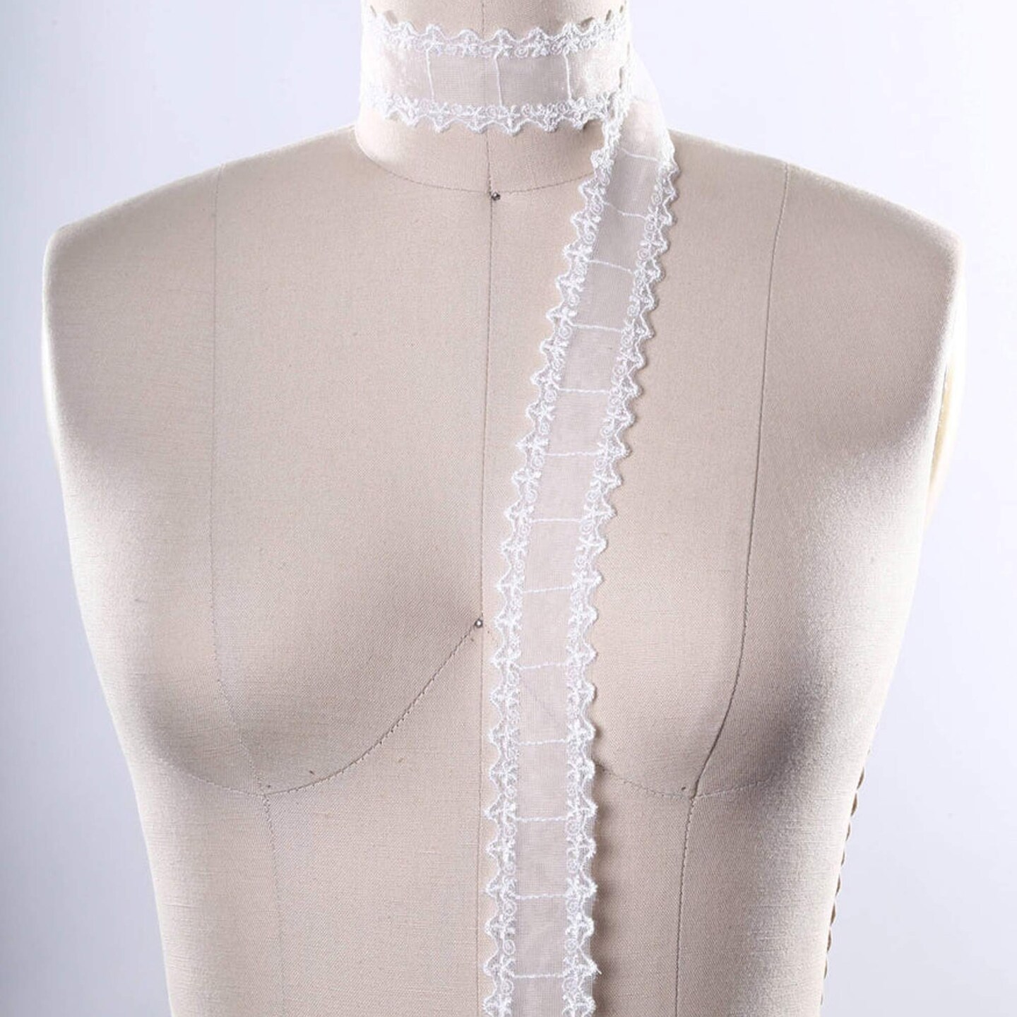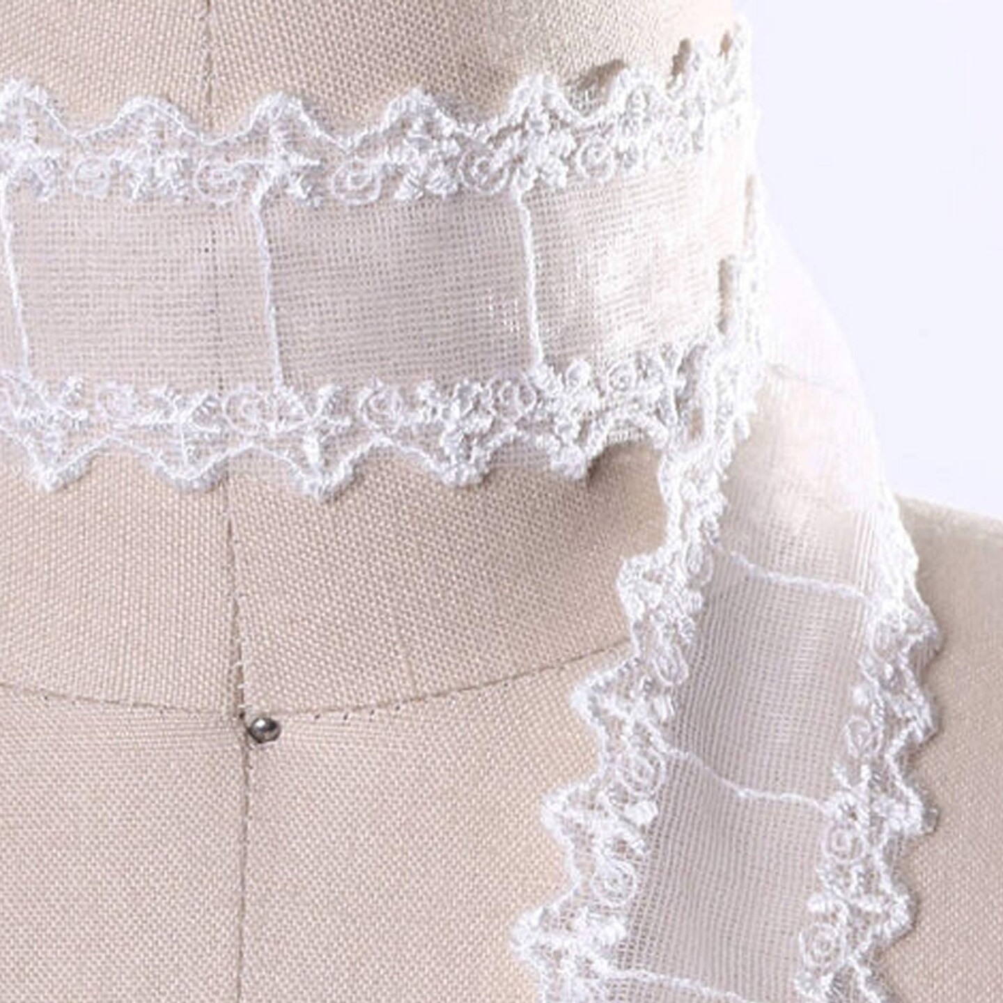 2 Yards Ivory Polyester Sheer Embroidered Lace Trim Scalloped Floral Vintage Style