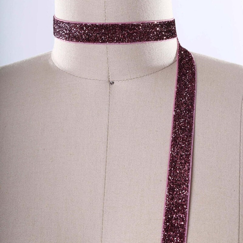2 Yards Mauve Pink Glitter Elastic Trim 5/8" Stretchy Ribbon for Headbands & Crafts