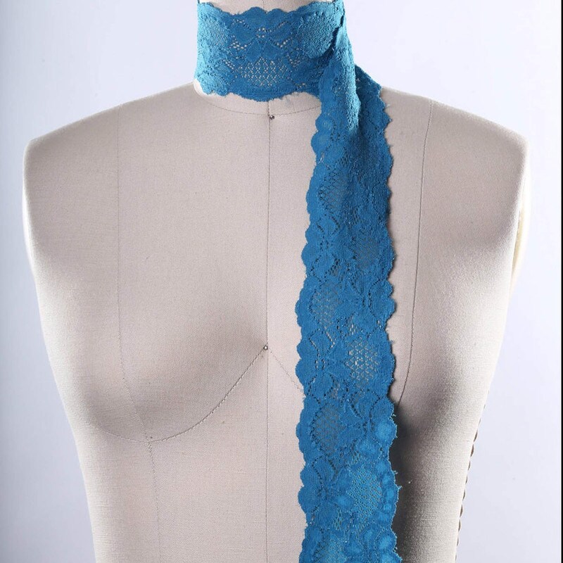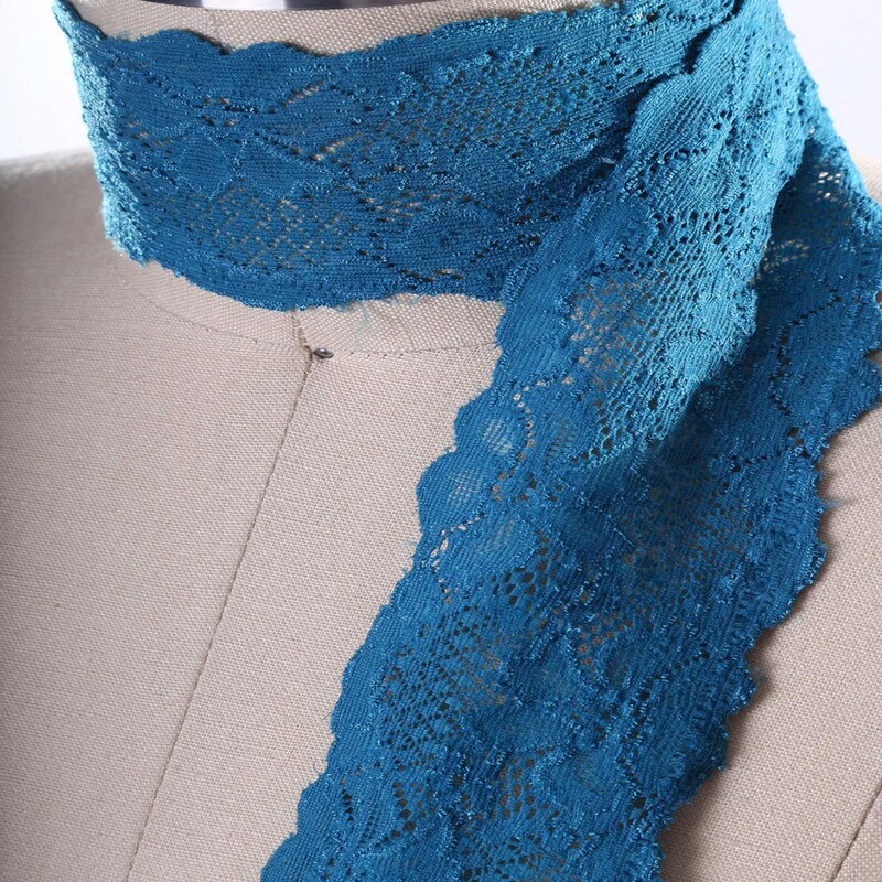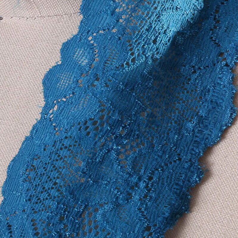 2 Yards Middle Sky Blue Wide Stretch Lace Trim 2.5" Floral Elastic for Lingerie Sewing & Crafts