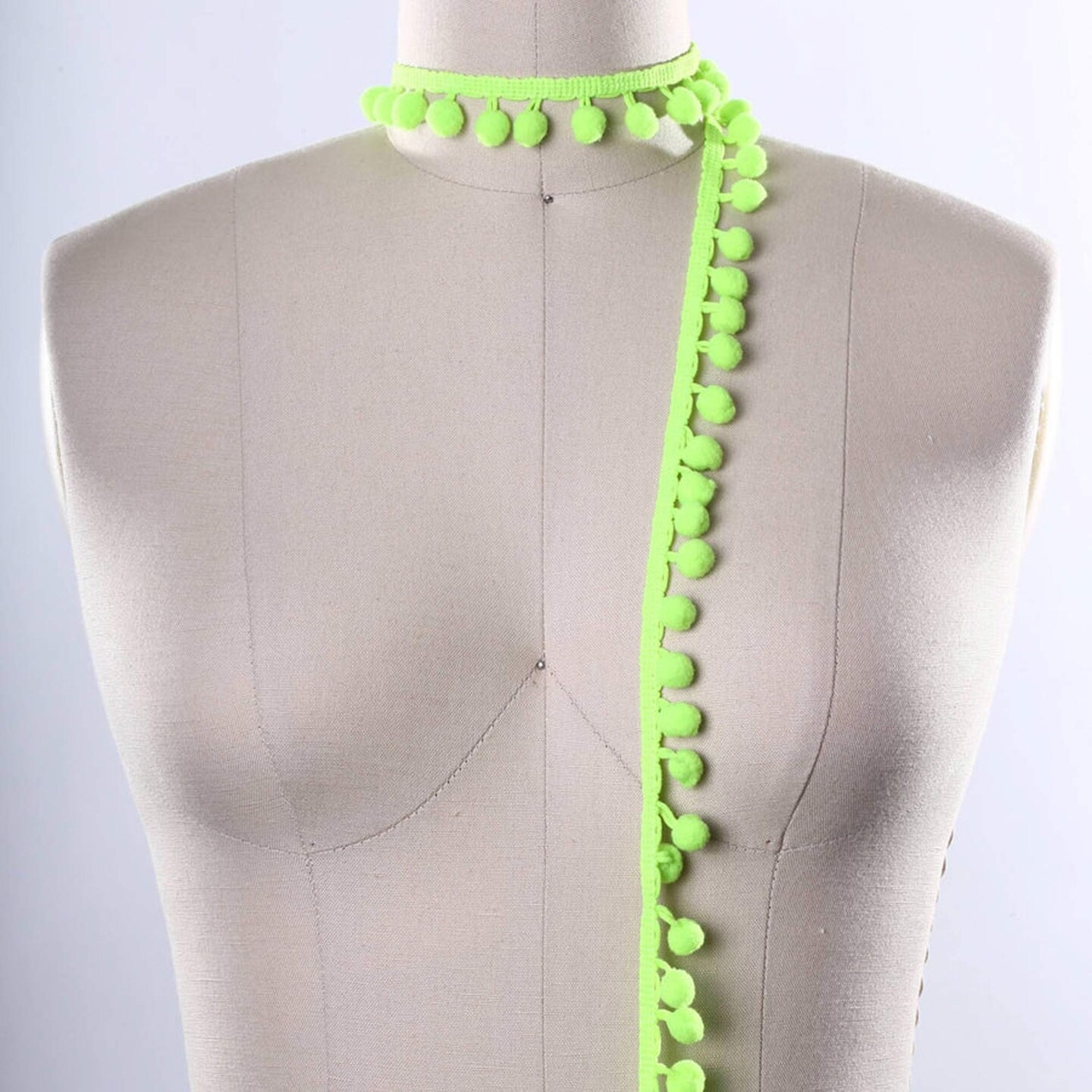 2 Yards Neon Green Small Pom Pom Trim Lime Green Festive Fringe
