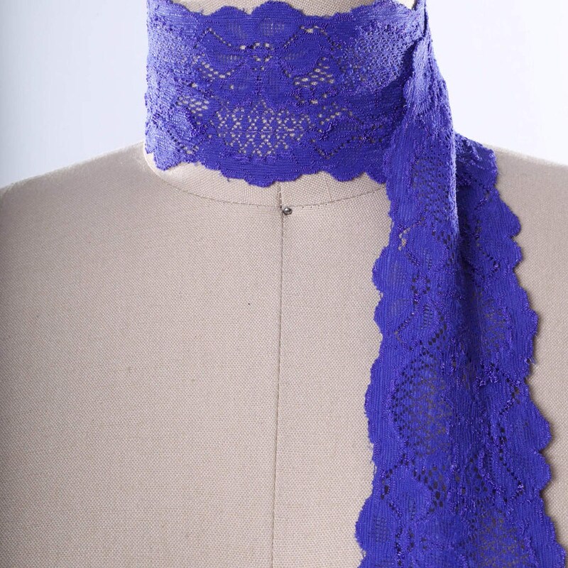 2 Yards Purple Wide Stretch Lace 2.5" Floral Elastic Trim for Lingerie, Overlays & Accents