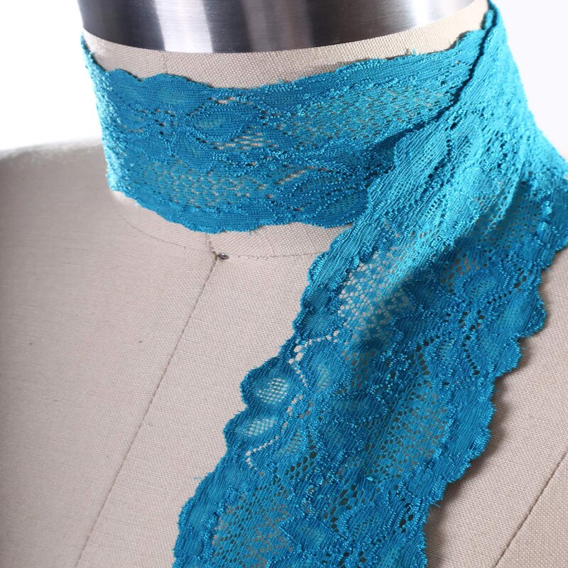 2 Yards Teal Blue Wide Stretch Lace Trim 2.5" Floral Elastic for Lingerie, Sewing & Crafts