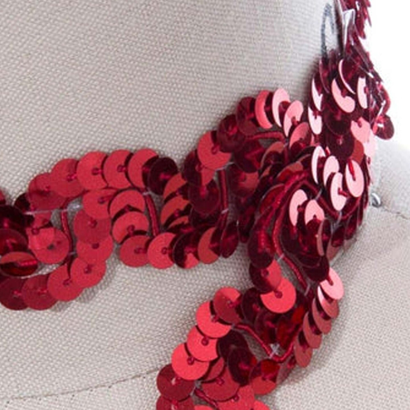 2 Yards Waved Red Sequin Trim Non-Stretch Sequined Lace Tape