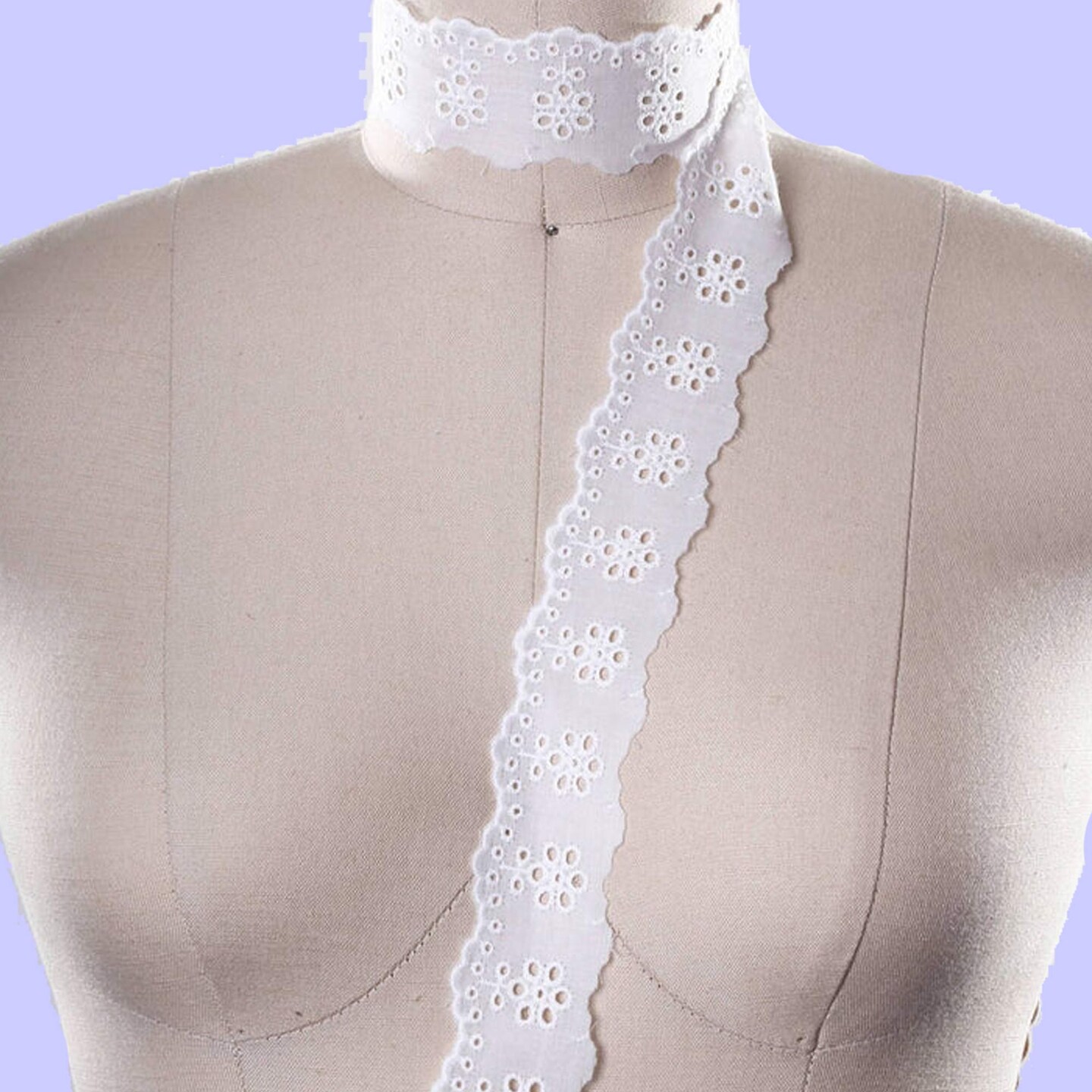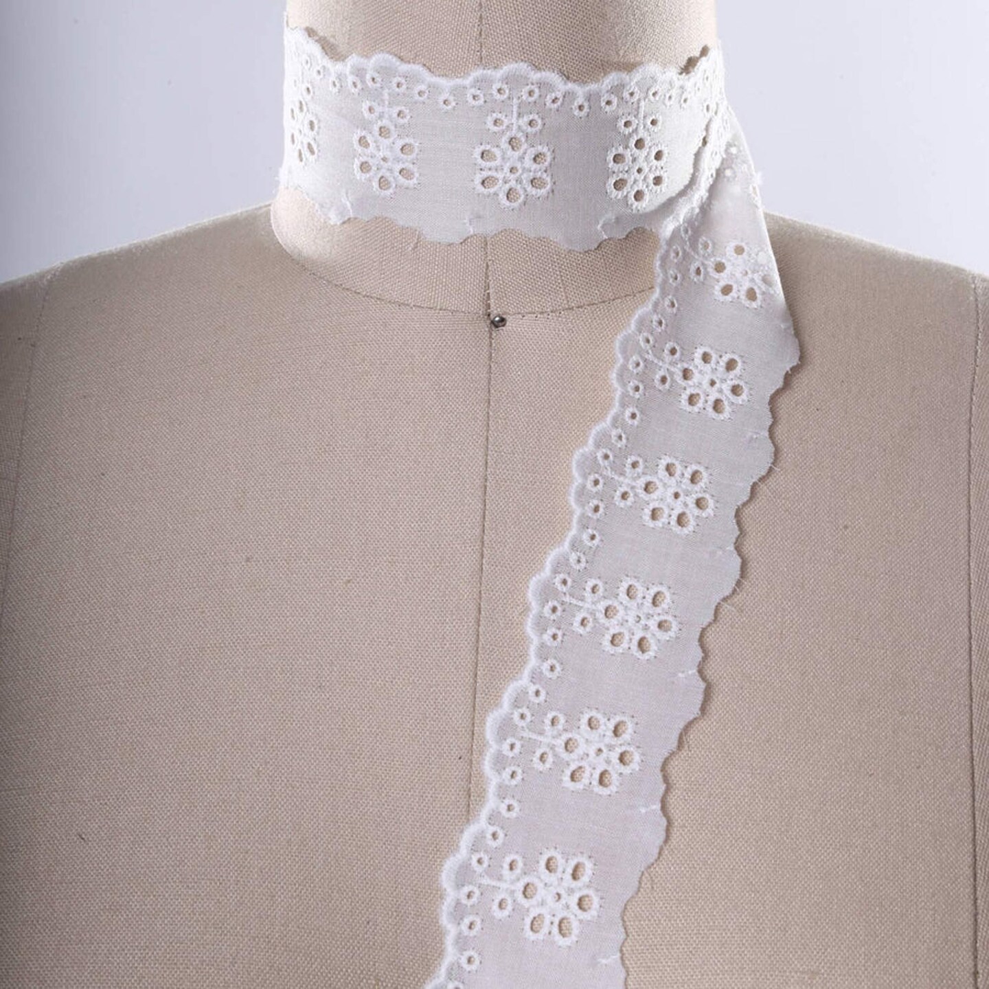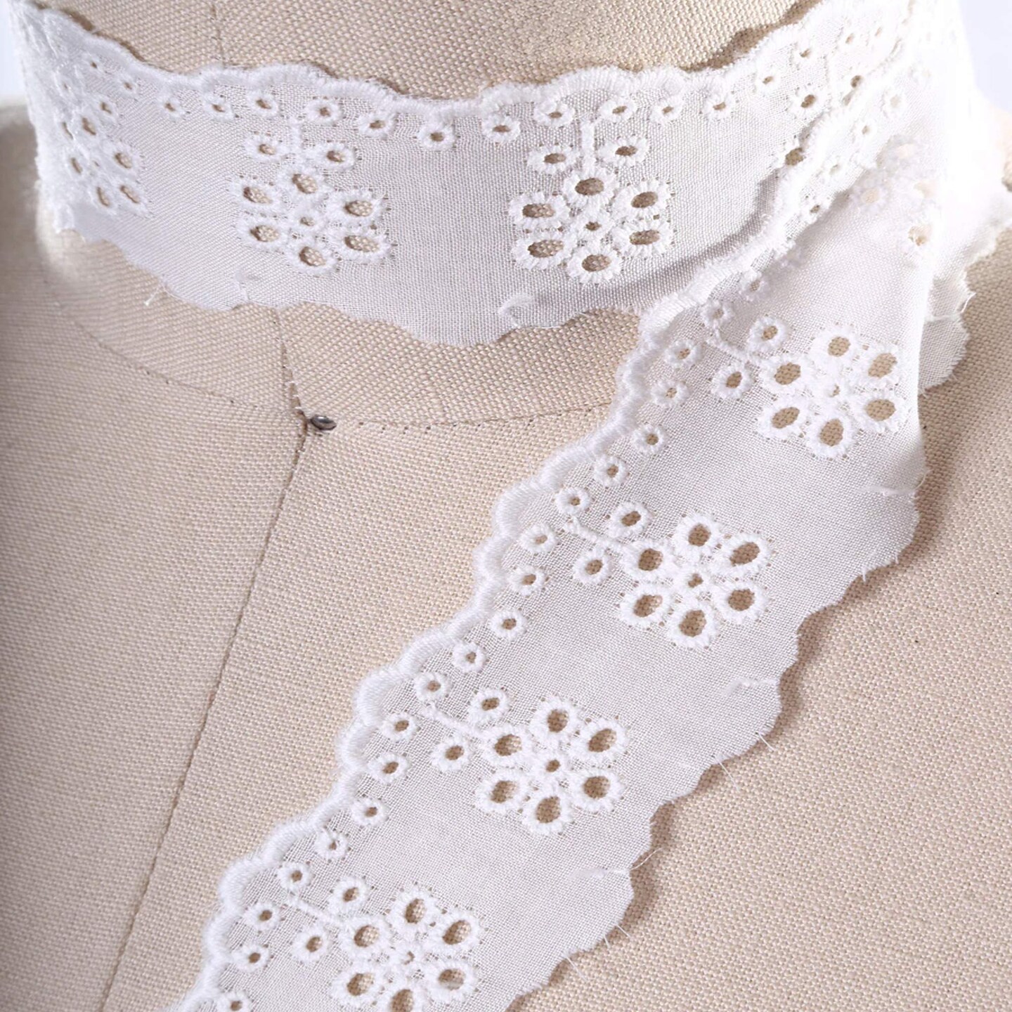 2 Yards White Cotton Lace Trim 2" Wide with Multiple Eyelets & Embroidered Edge