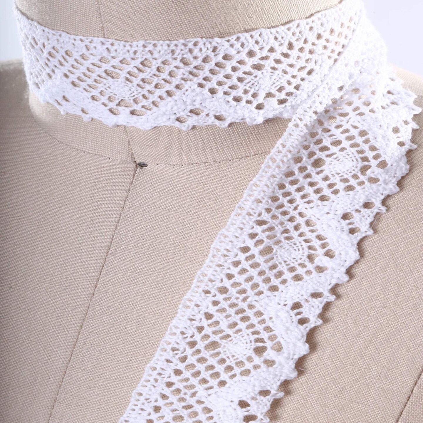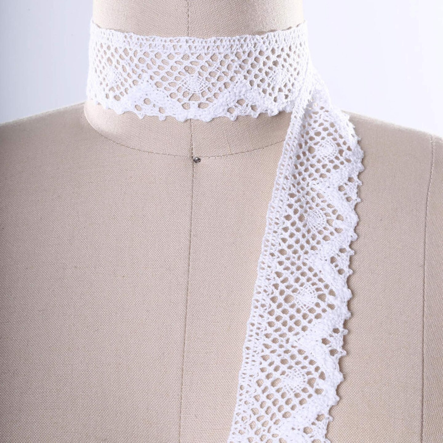 2 Yards White Crochet Cluny Cotton Lace Trim 1.5 Inch Wide for Bridal and Apparel Accents