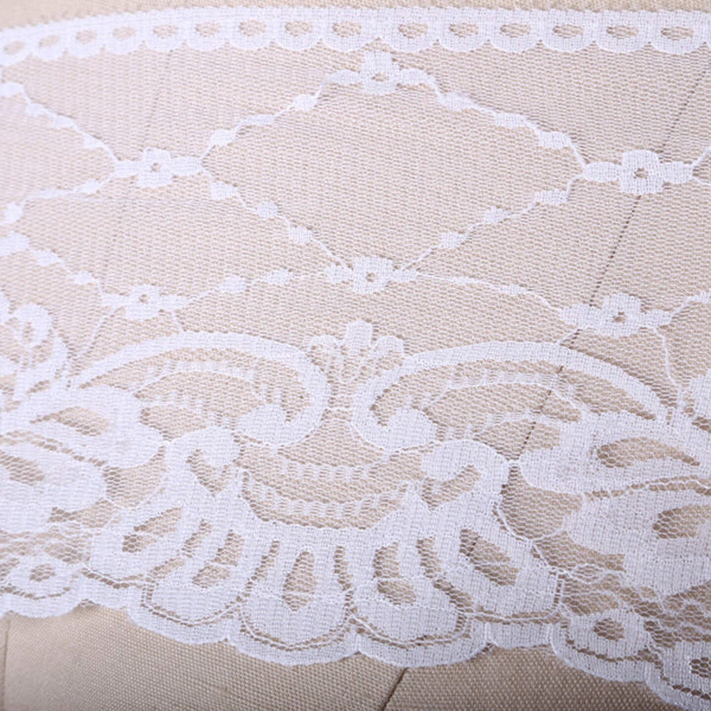 2 Yards White Floral Crossed Polyester Lace Trim Scalloped Edge for Rustic Decor and Crafting