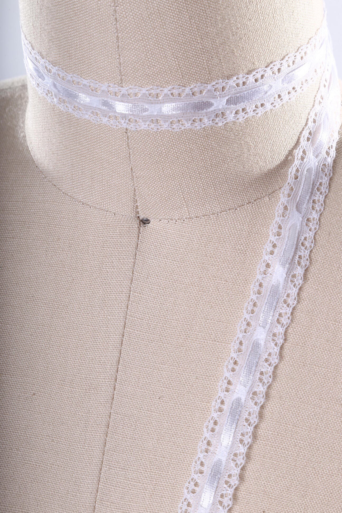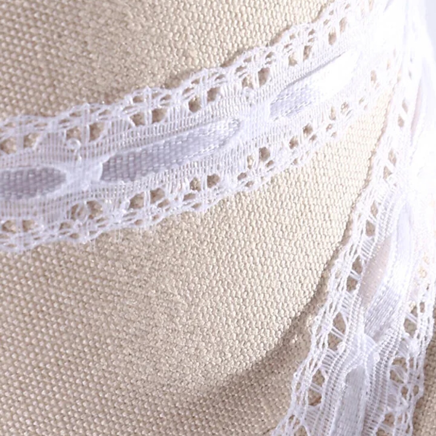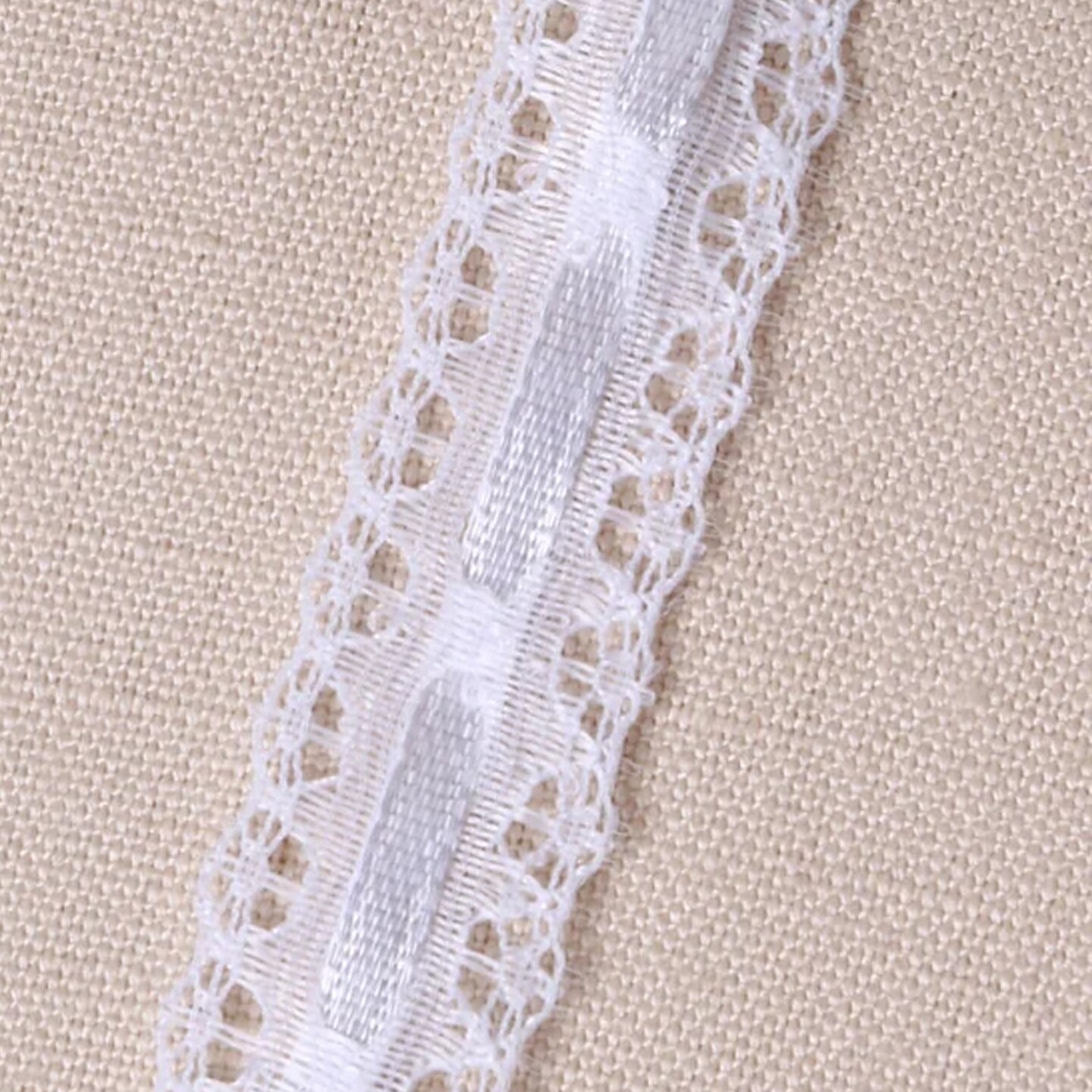 2 Yards White Polyester Eyelet Lace Trim with Satin Ribbon Lattice and Picot Edges