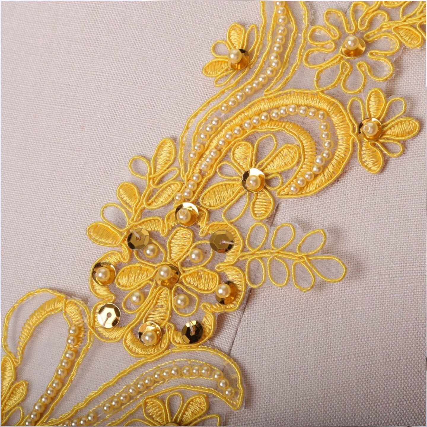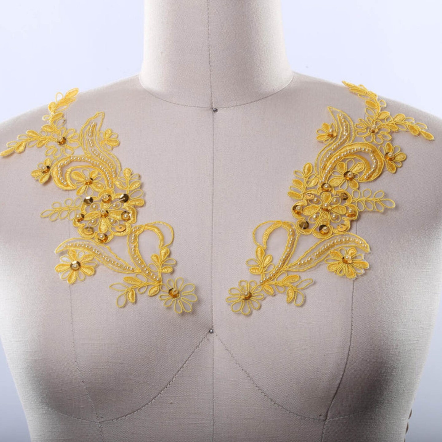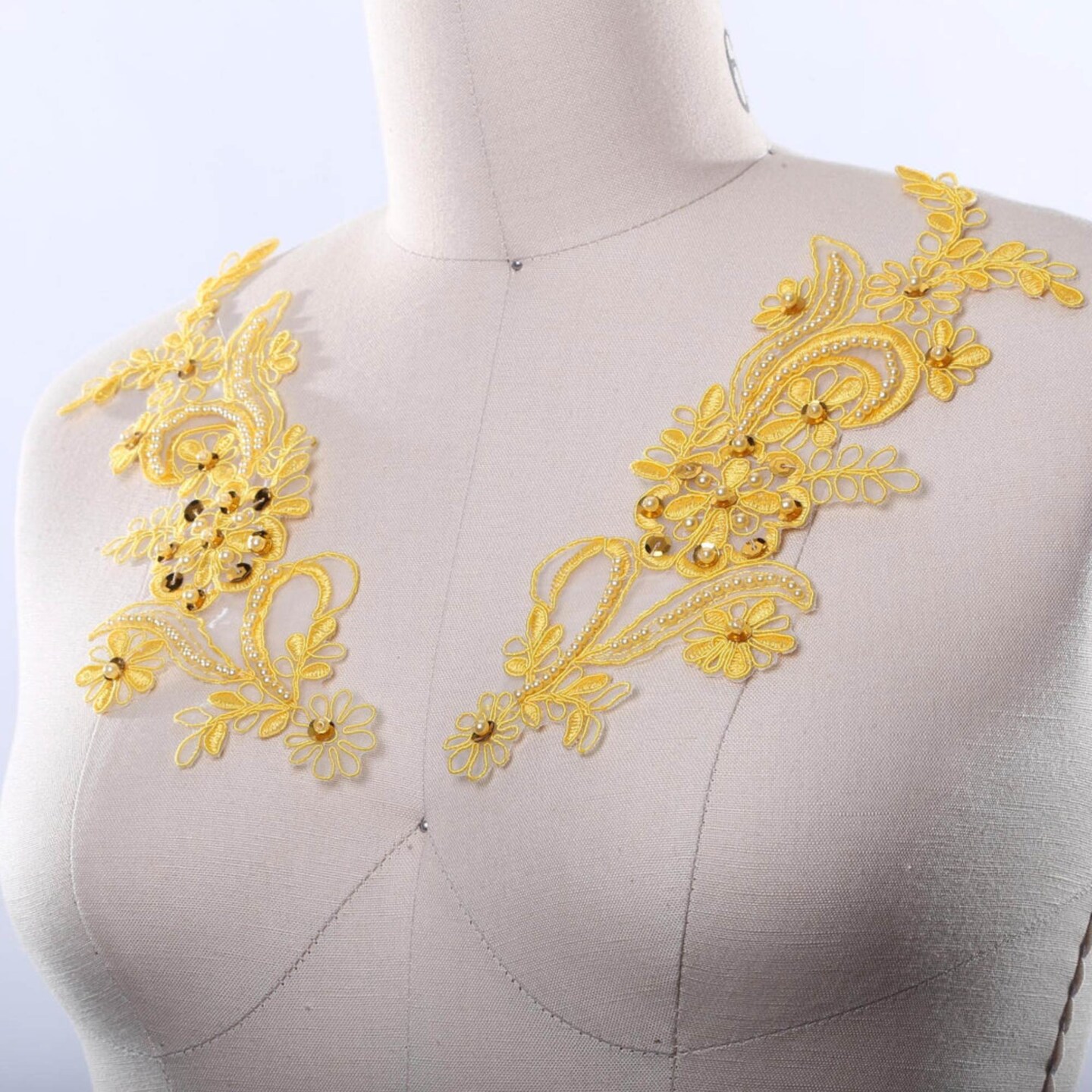 2 Yellow Alencon Lace Appliques with Beads and Sequins for Gowns and Costumes