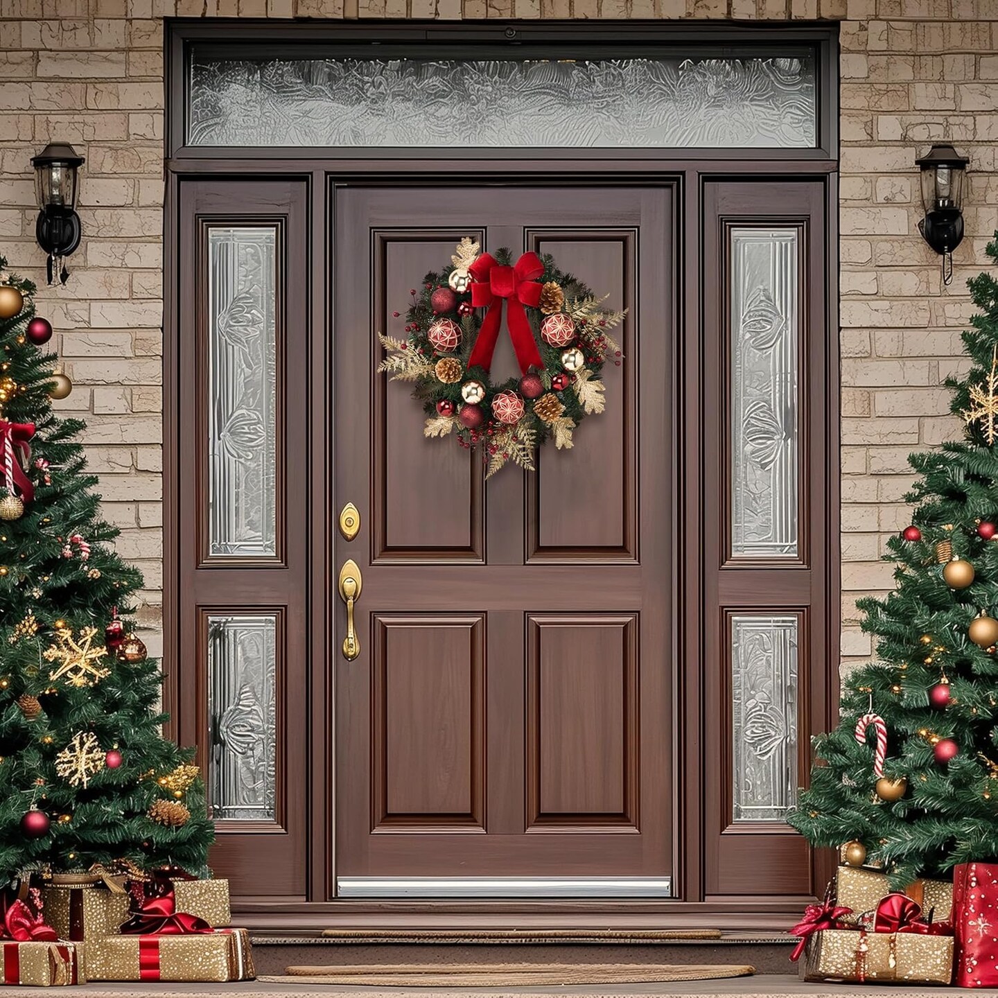 20'' Pre-Lit Christmas Wreath for Front Door with Lights (Red/Gold) 4"D x 20"W x 20"H