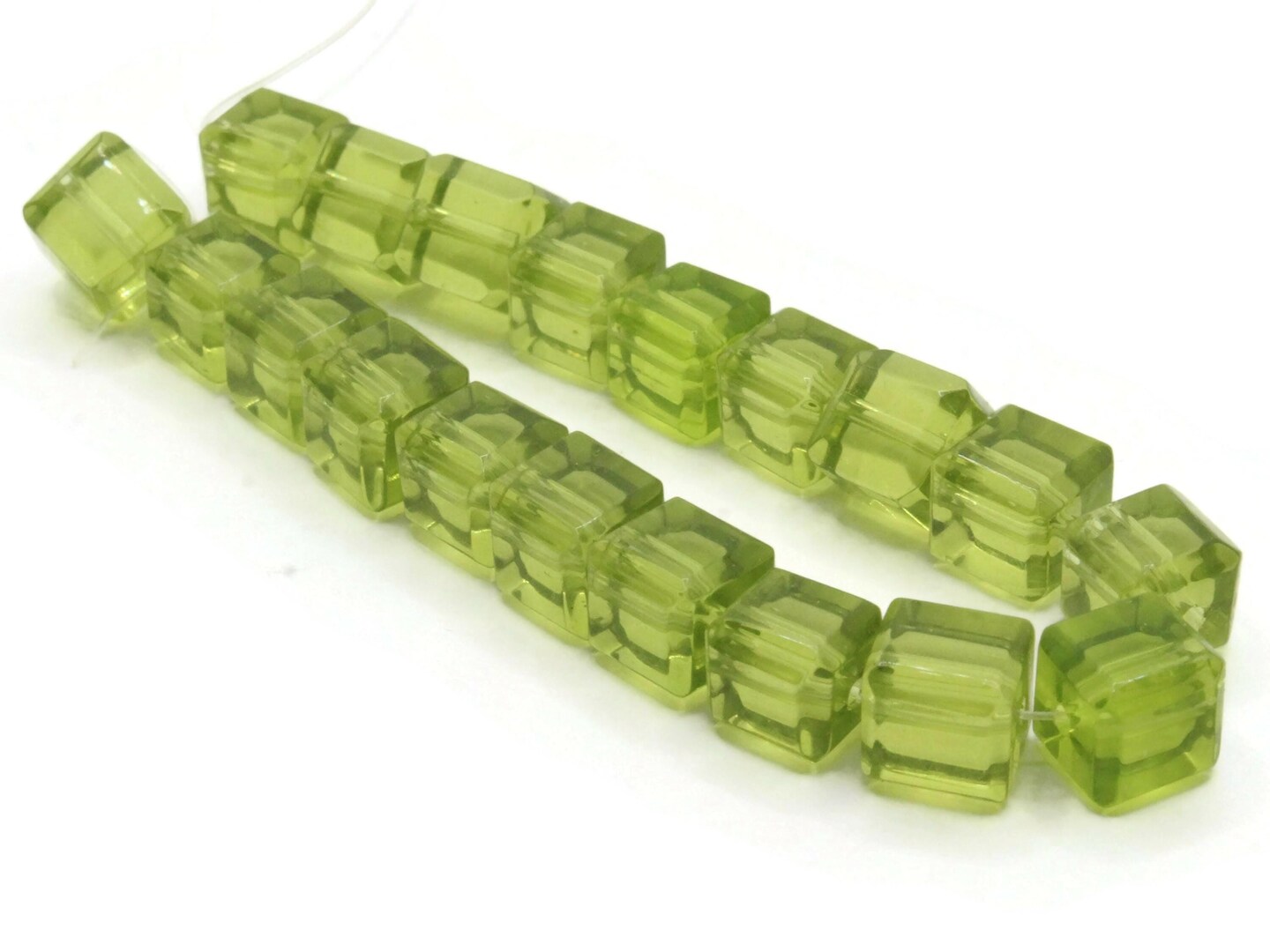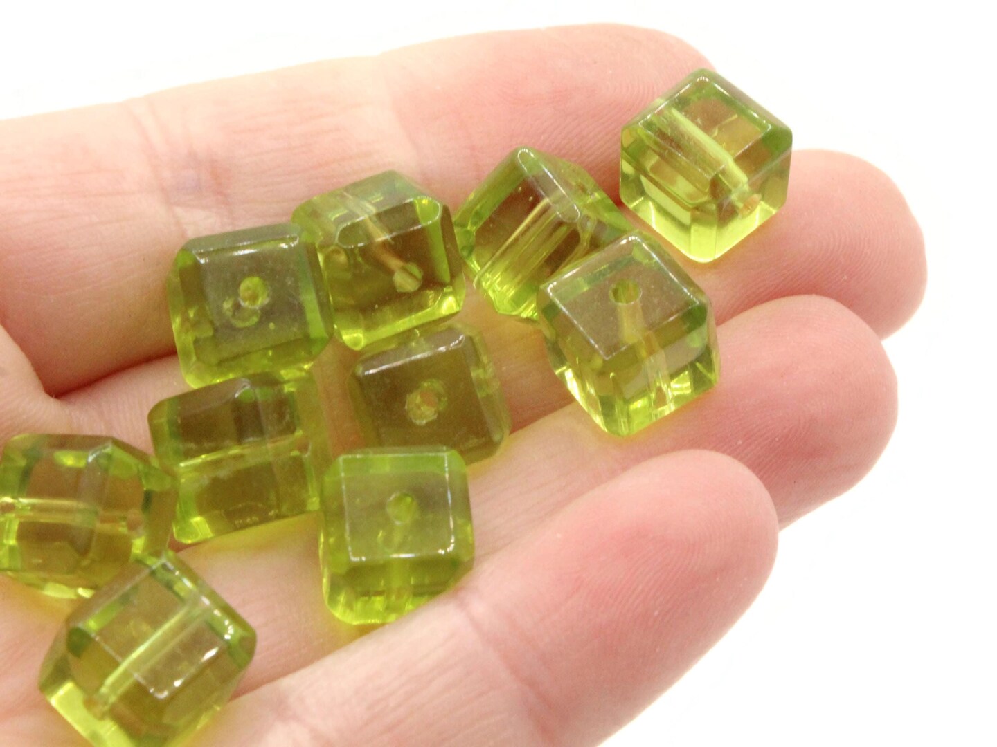 20 10mm Green Glass Cube Beads