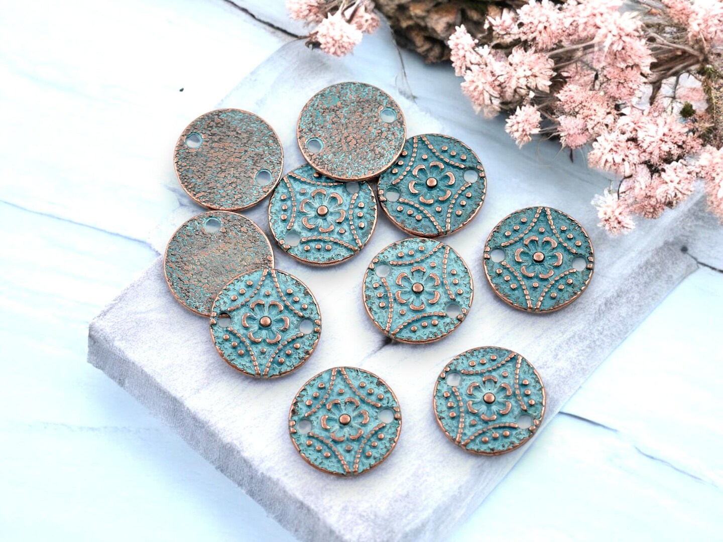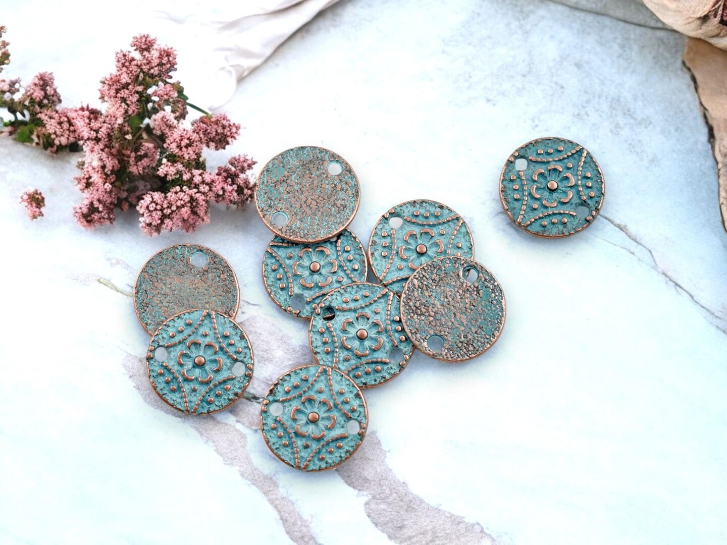 *20* 11mm Copper Patina Round Floral Connectors