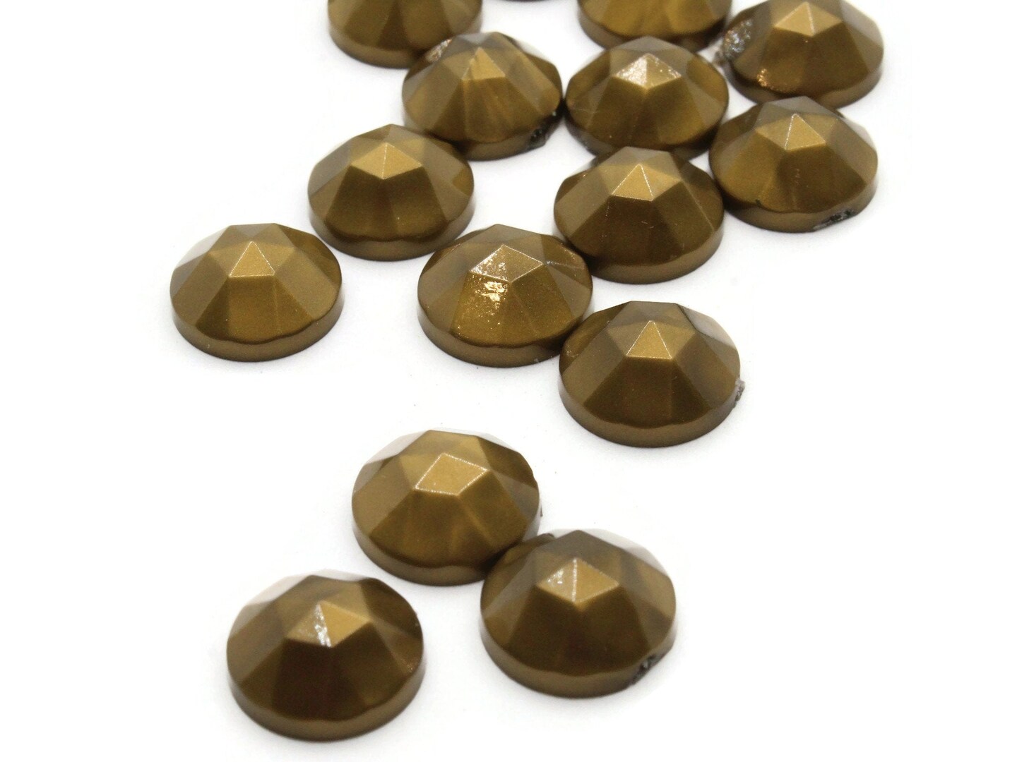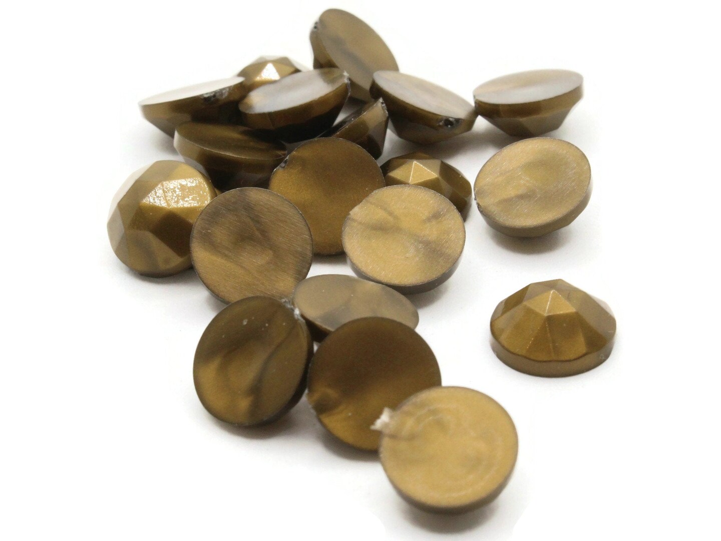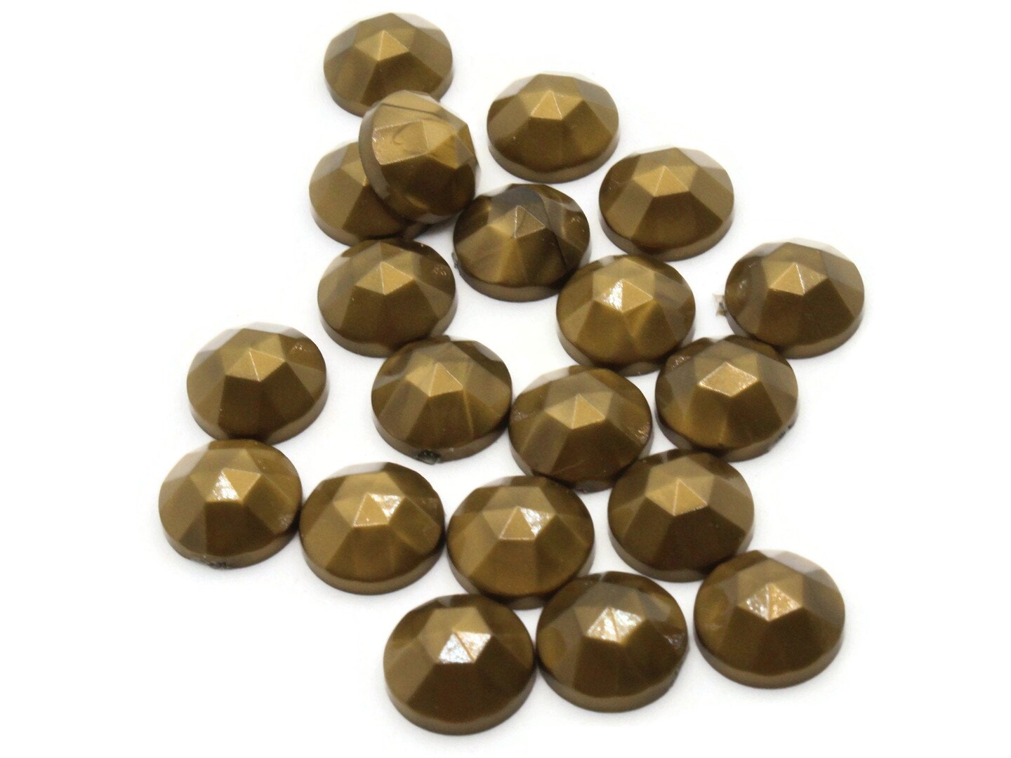 20 11mm Faceted Round Bronze Vintage Plastic Cabochons