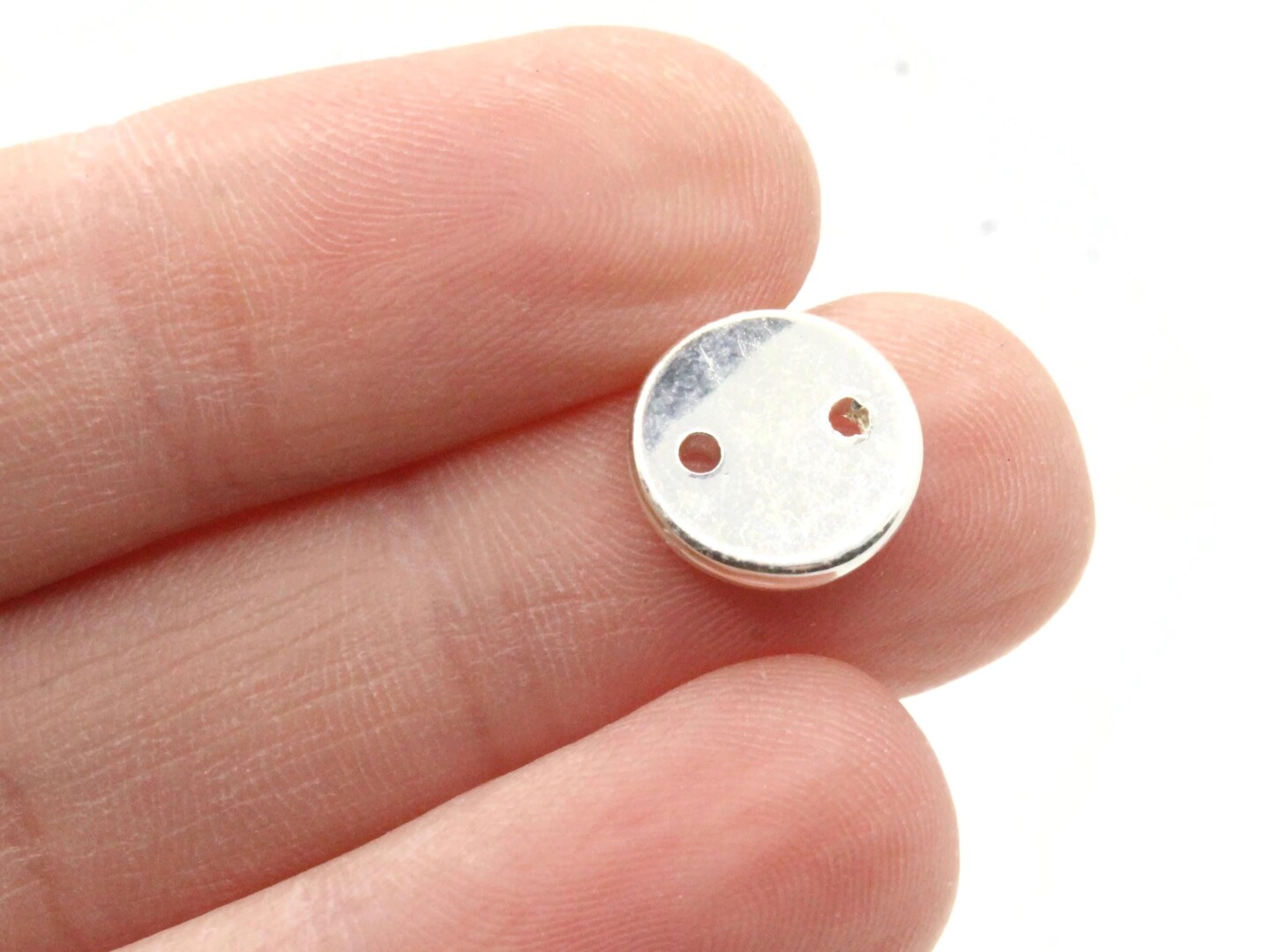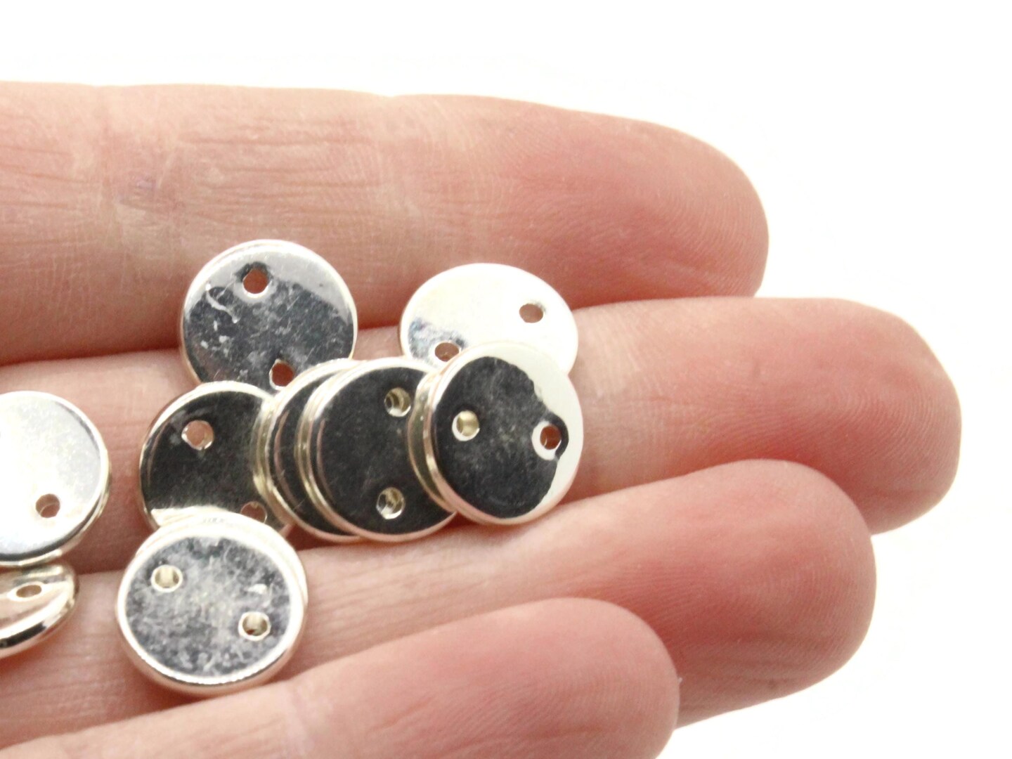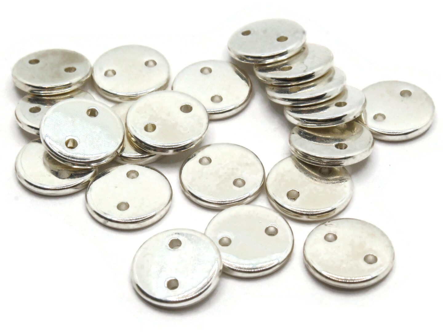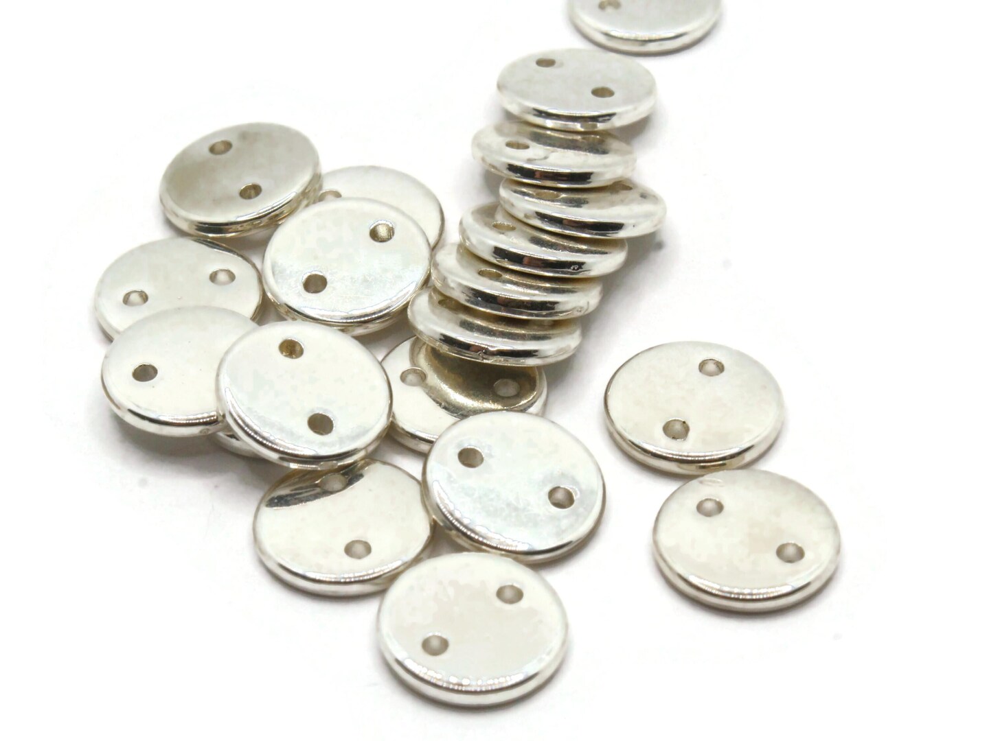 20 11mm Flat Round Two Hole Disc Beads Vintage Silver Plated Plastic Beads