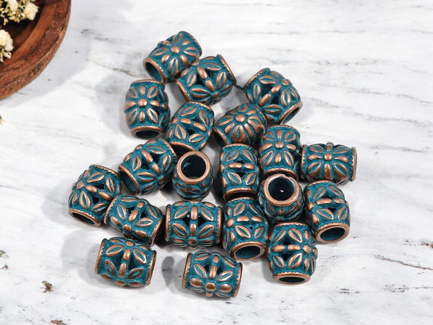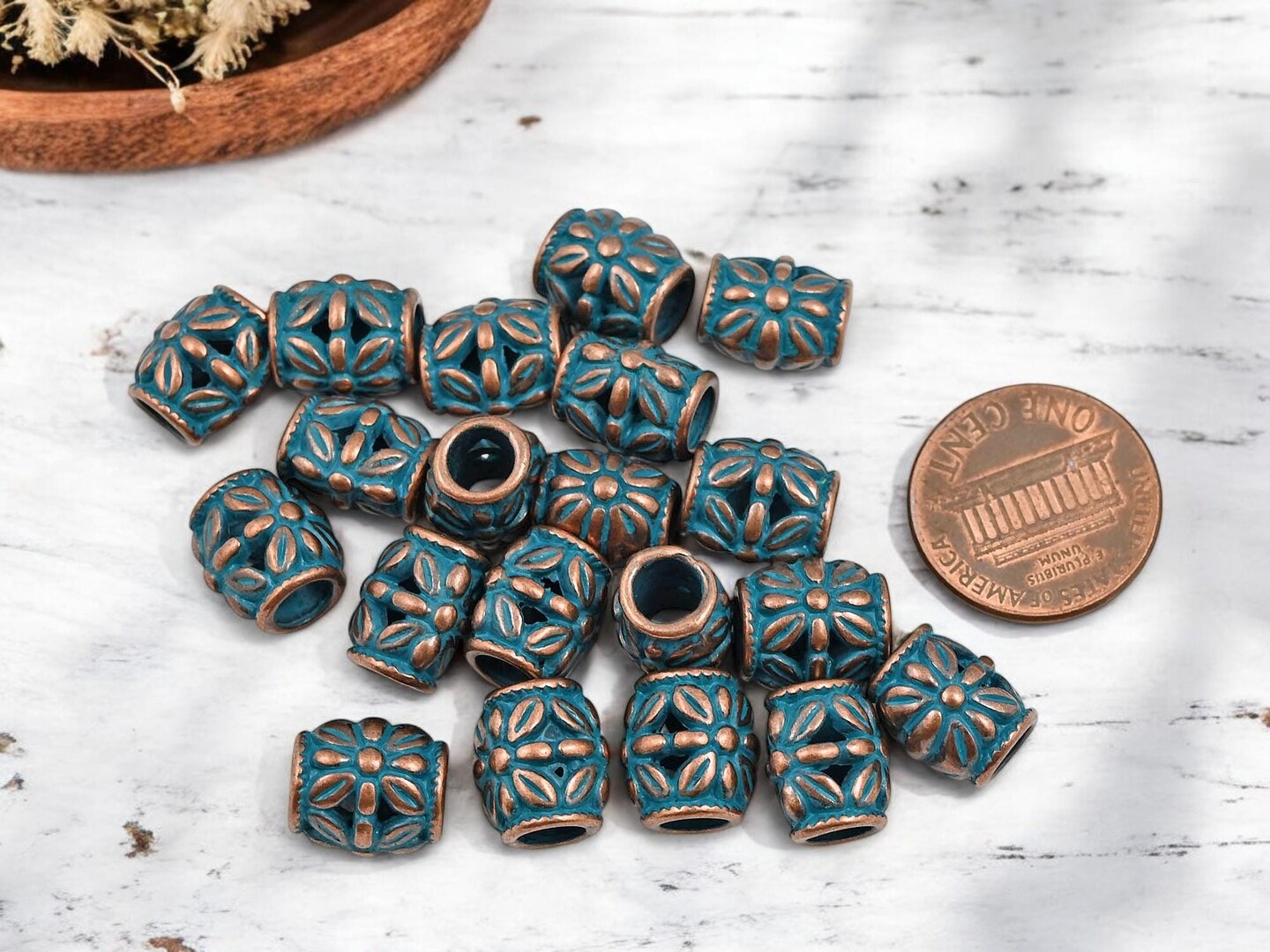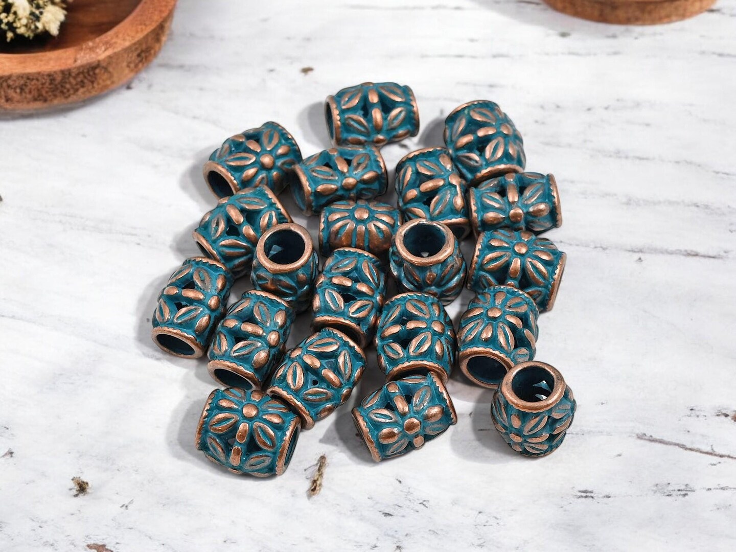 *20* 11x10mm Copper Patina Large Hole Barrel Beads